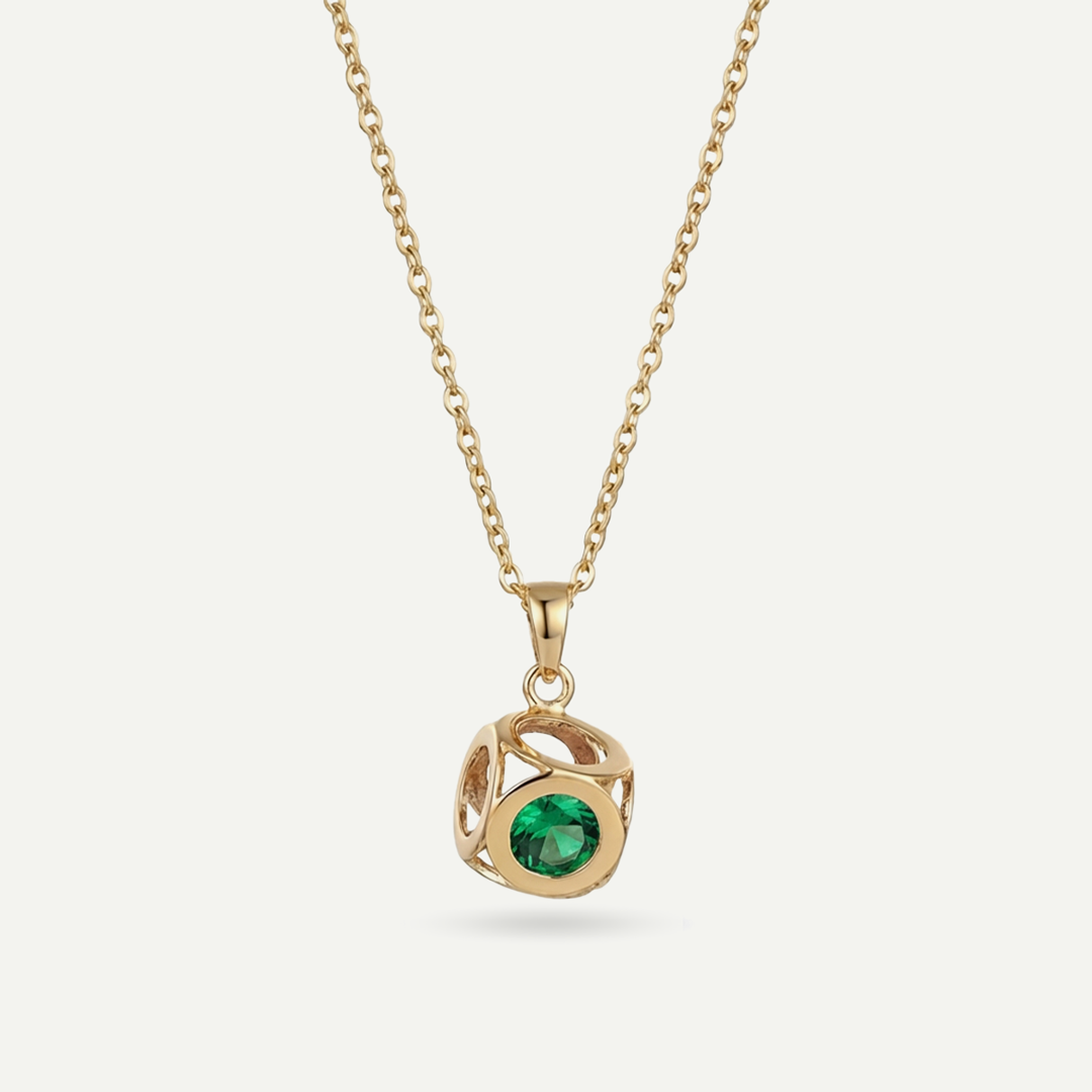 Collana Fabiani in oro 9kt con cubo e zircone verde