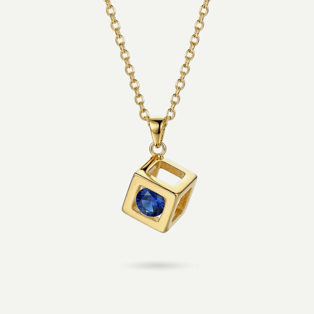 Collana Fabiani in oro 9kt con cubo e zircone blu