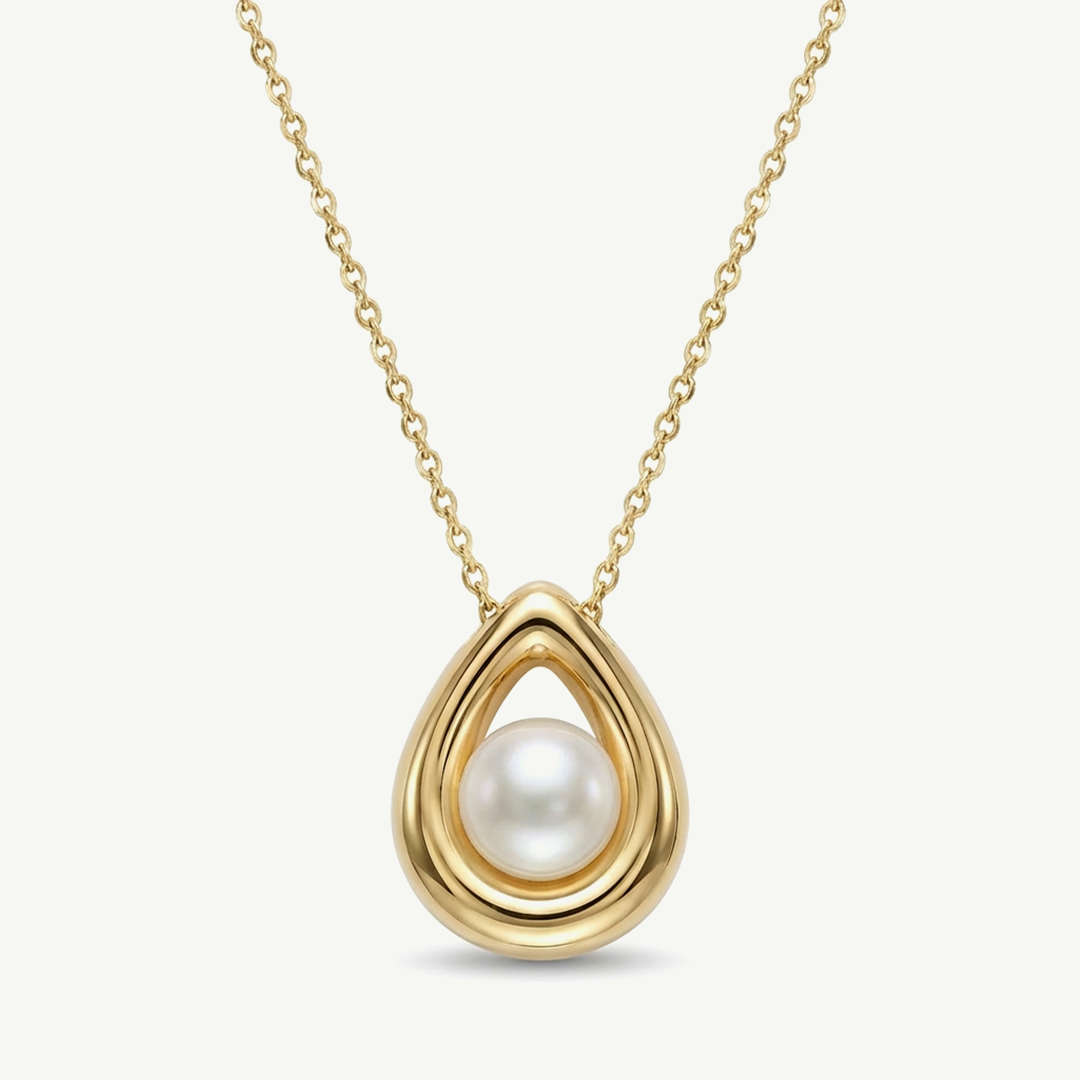 Questa collana Fabiani in oro giallo 9kt si distingue per un design elegante e armonioso, dove la morbida forma a goccia abbraccia una perla luminosa creando un equilibrio perfetto tra modernità e classicismo. La montatura liscia e avvolgente valorizza la naturale bellezza della perla, rendendola protagonista assoluta del gioiello.