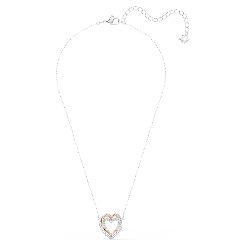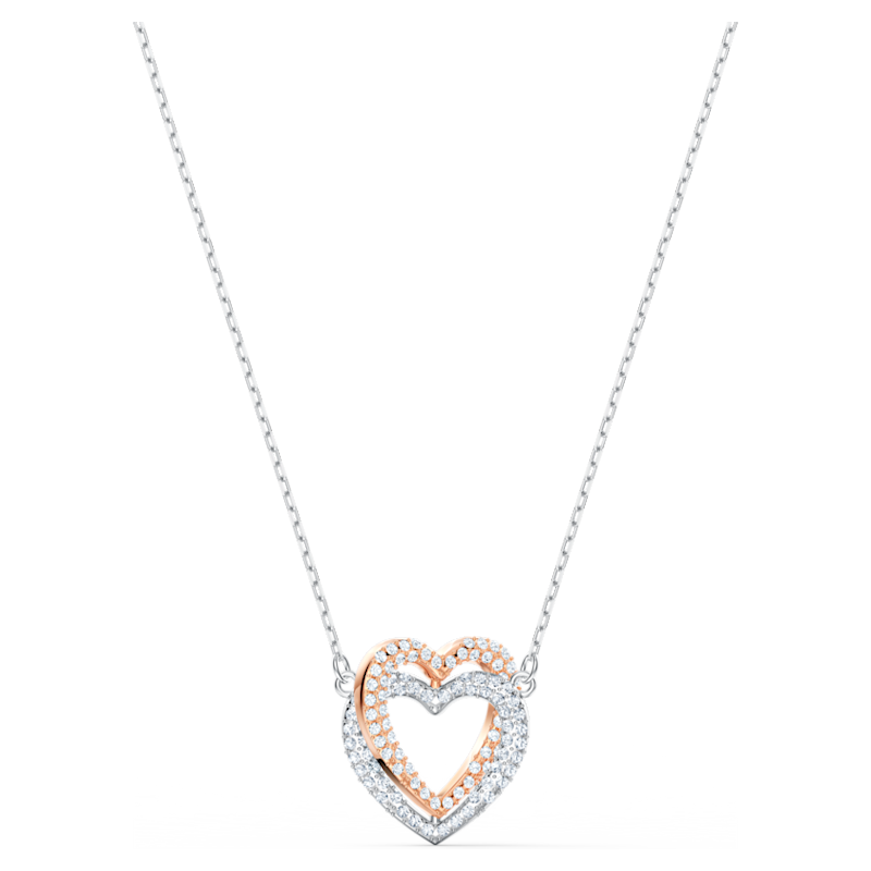 Due cuori che battono all’unisono: Questa splendida e versatile collana Swarovski presenta un romantico design, con due cuori intrecciati in un mix di placcature del metallo. Ogni cuore è decorato con numerose pietre che scintillano ogni volta che la luce le colpisce. La posizione dei cuori è regolabile per creare look differenti. Un regalo di grande significato per una persona speciale.