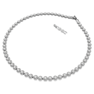 Collana Tennis Una Angelic, Taglio Round, Lunga, Bianca, Placcato rutenio