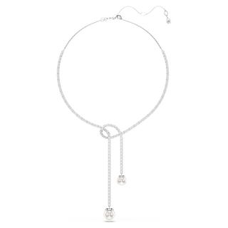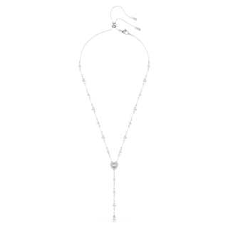 Collana a Y Ariana Grande x Swarovski, Taglio misto, Crystal Pearl, Cuore, Bianco, Placcato rodio