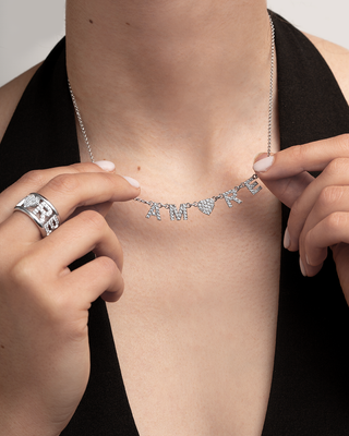 Collana Fabiani in argento con pendente iniziale T in oro giallo 9Kt e crystal white