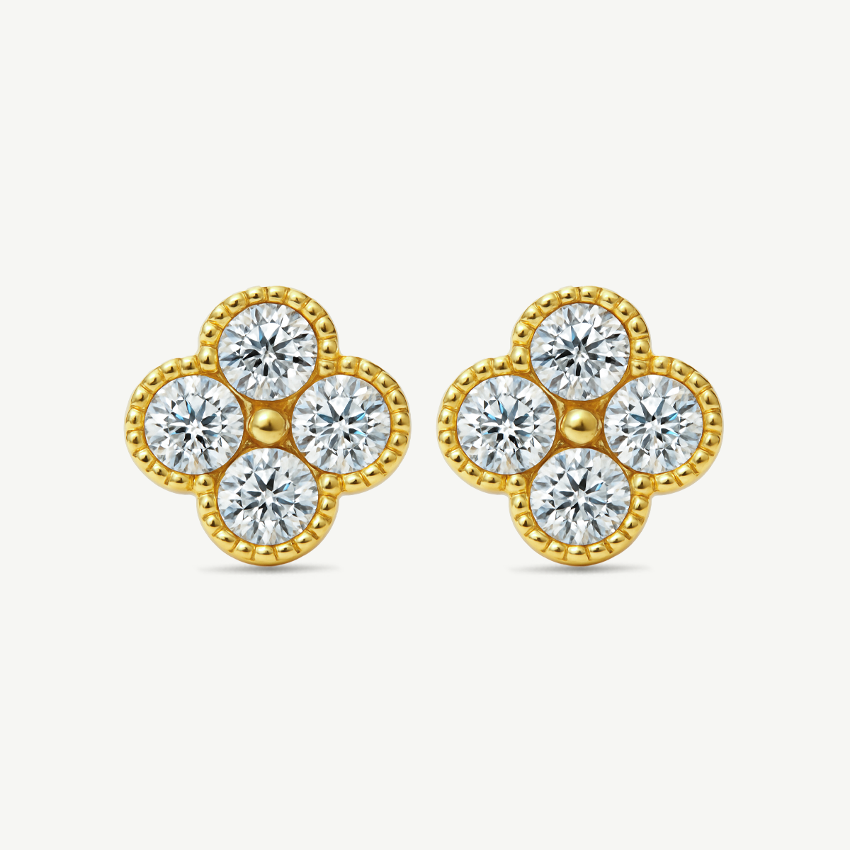 Orecchini in argento 925 dorato a forma di fiore con zirconi bianchi taglio brillante. Larghezza 9 mm circa e chiusura a farfallina.