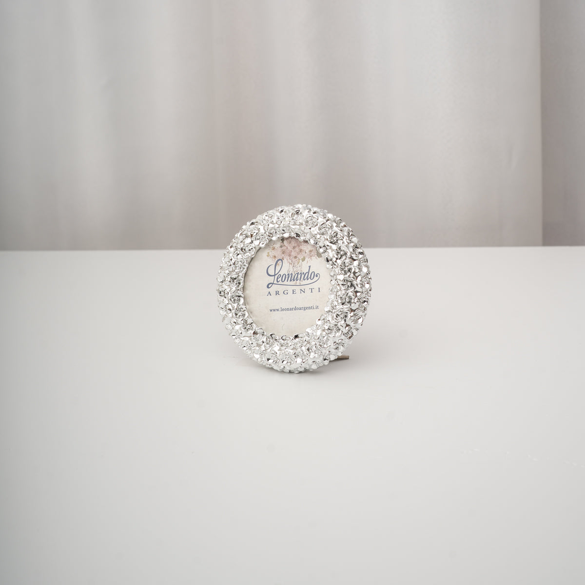 Il design circolare, impreziosito dalla texture luminosa tipica della collezione Leonardo Argenti, valorizza fotografie e piccoli ritratti, rendendola perfetta sia per ambienti moderni che classici. Un’idea raffinata anche come regalo per occasioni speciali.