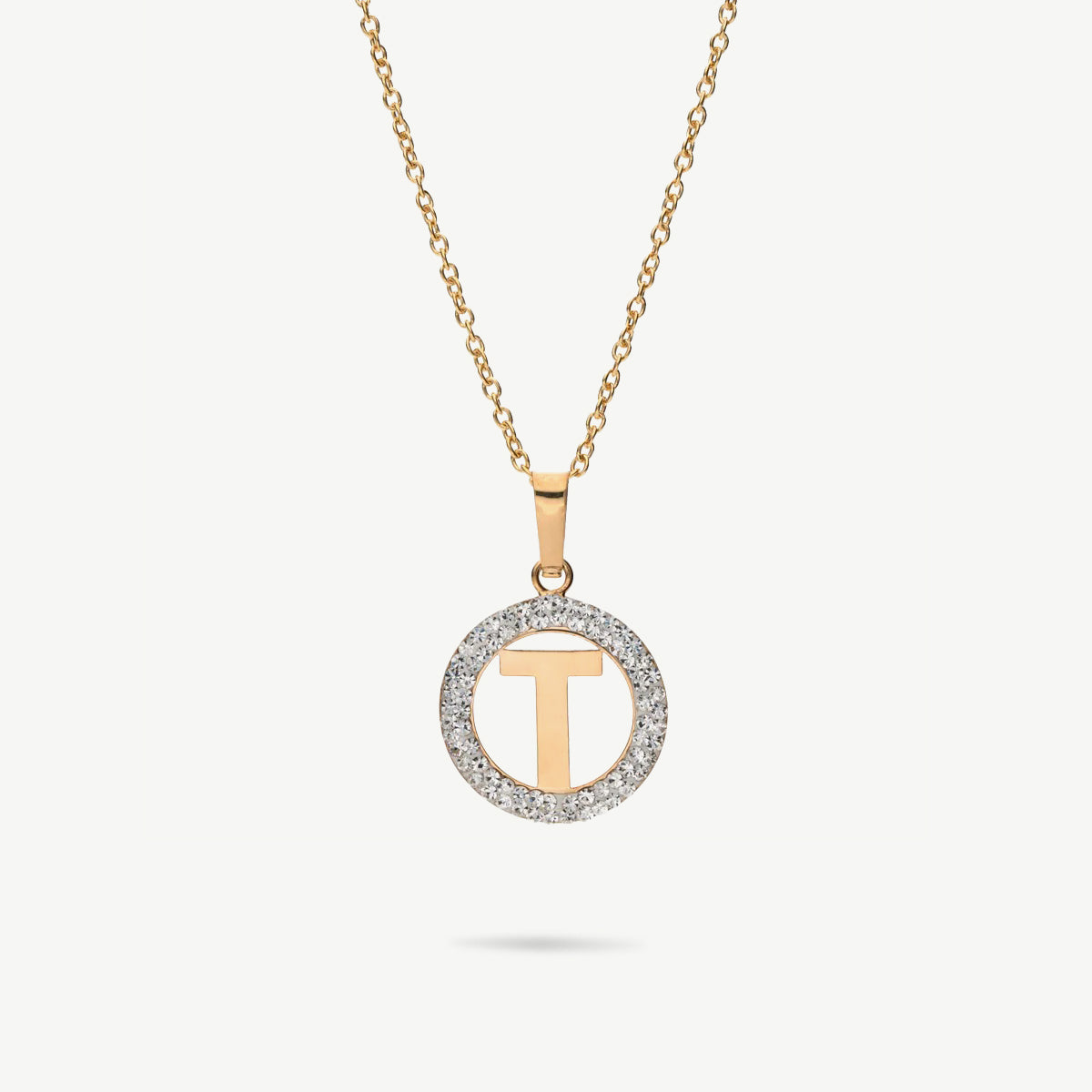 La collana Fabiani in argento 925 rodiato con pendente in oro giallo 9kt esprime eleganza e significato attraverso l’iniziale T, incastonata in un cerchio di zirconi bianchi crystal white che ne esalta la luminosità.