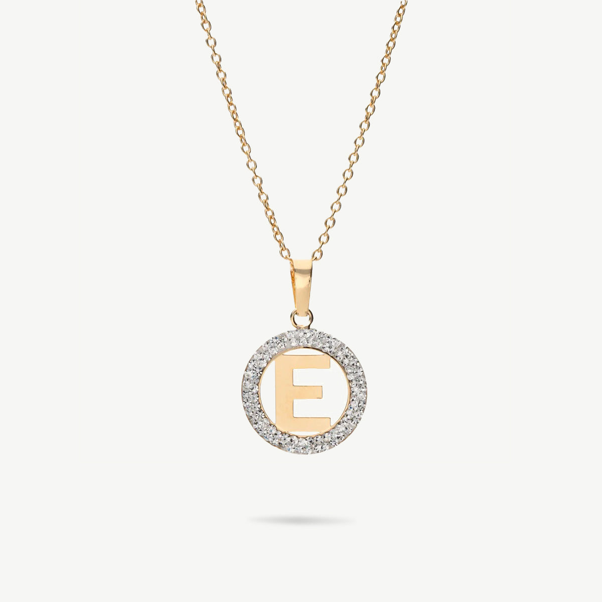 La collana Fabiani in argento 925 rodiato con pendente in oro giallo 9kt è impreziosita da un cerchio di zirconi bianchi crystal white che incornicia l’iniziale E, simbolo di identità e luce.