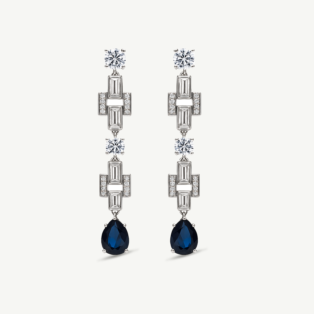 Gli orecchini Fabiani pendenti in argento 925 con zirconi blu uniscono eleganza e brillantezza in un design raffinato e moderno. La tonalità intensa degli zirconi dona profondità e luce al gioiello, creando un contrasto prezioso con la finitura rodiata dell’argento.