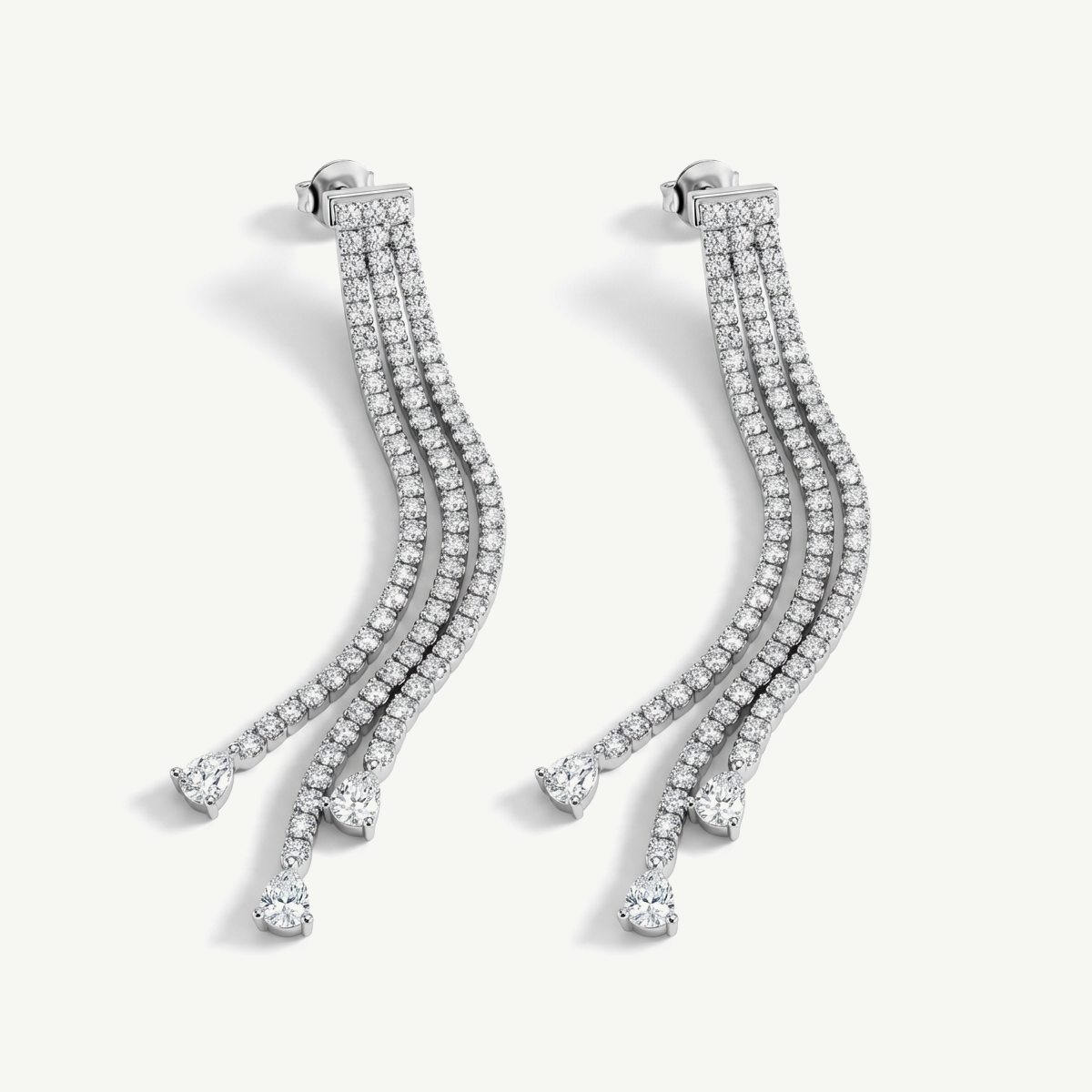 I due fili laterali misurano circa 5,5 cm, mentre il filo centrale è leggermente più lungo, circa 6,2 cm, per un effetto degradé armonioso e slanciato che valorizza il viso. Ogni filo termina con un elegante zircone finale taglio a goccia, dettaglio prezioso che aggiunge brillantezza e raffinatezza all’insieme.