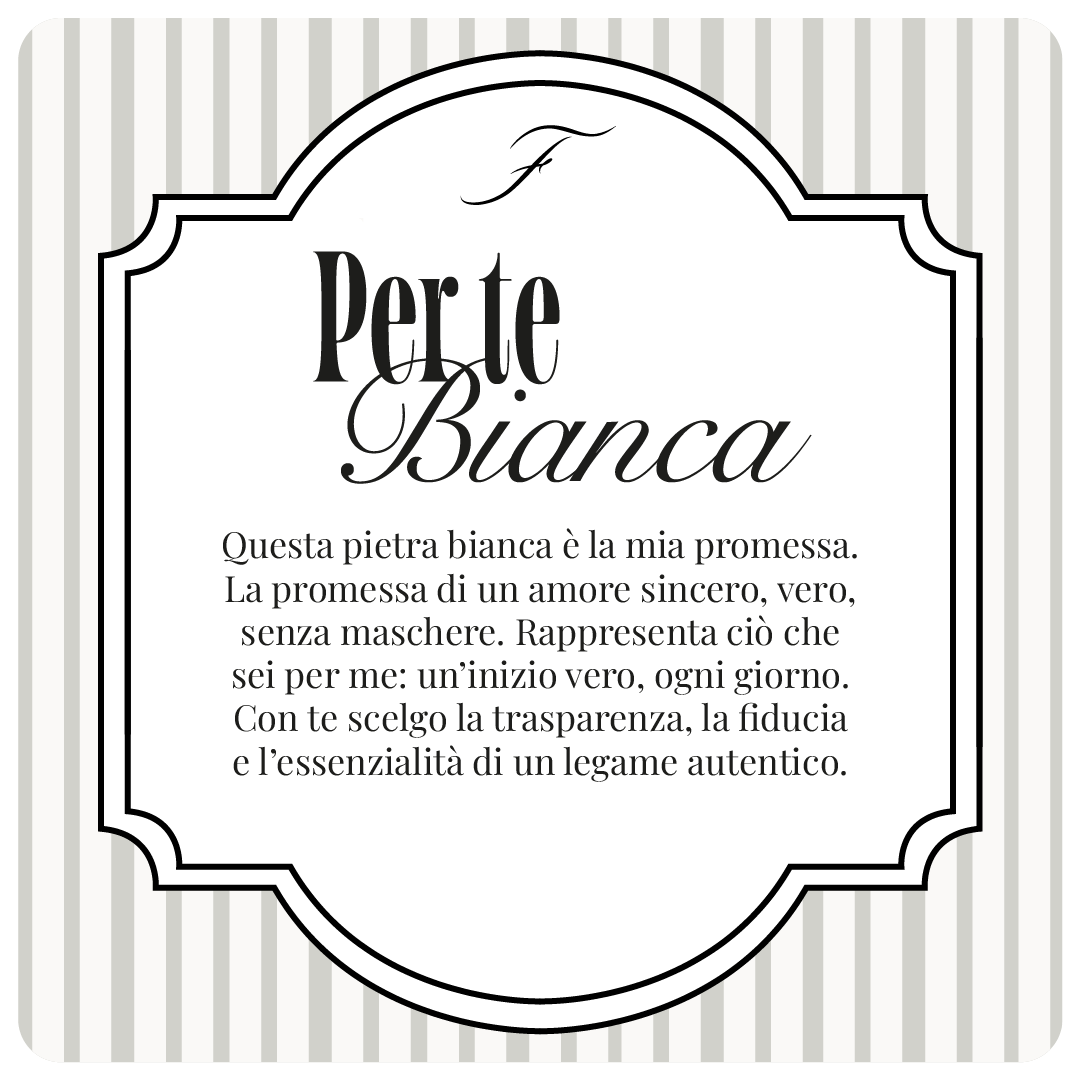 Con questi orecchini viene incluso un messaggio cartaceo dedicato, che racconta il significato della pietra Bianca e trasforma il gioiello in una vera promessa d’amore: