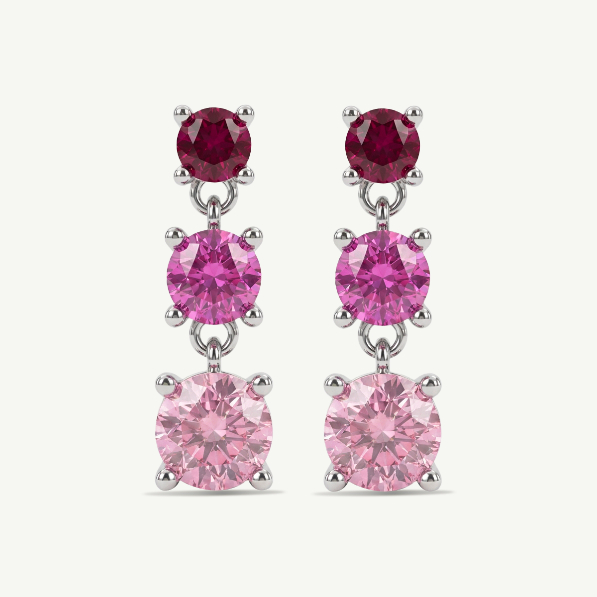 Questi orecchini Fabiani in argento 925 presentano una raffinata sequenza di tre pietre rotonde a gradazione, dal rosa più intenso fino alla tonalità più chiara. Un design elegante e luminoso, ideale per chi ama gioielli delicati ma di forte impatto.