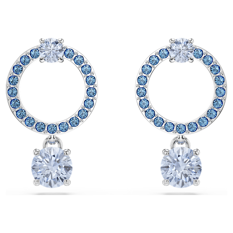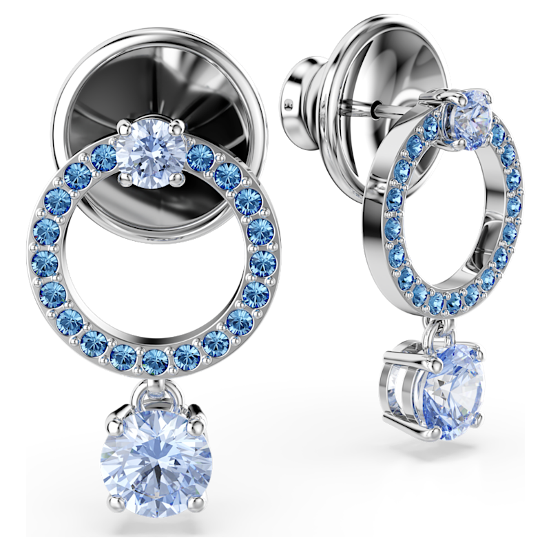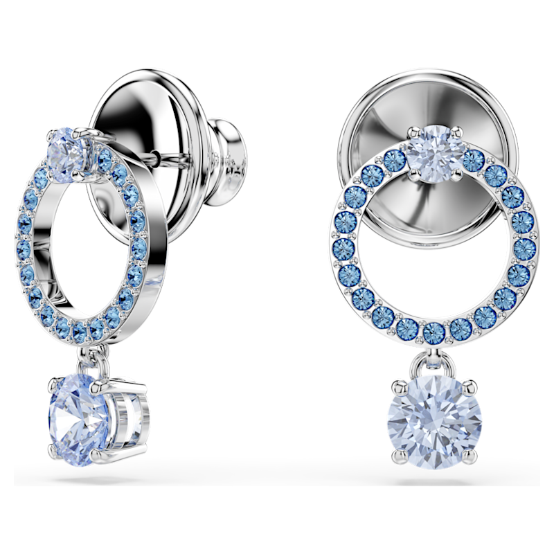 Questi colorati orecchini a buco sono semplici ma sempre brillanti. Ciascuno presenta un cristallo blu taglio Round sospeso da un piccolo cerchio, il quale è splendidamente impreziosito da uno scintillante pavé blu. Gli elementi pendenti sono pensati per dondolare ad ogni movimento del tuo capo, riflettendo la luce in ogni direzione. Un modo perfetto per far risplendere il tuo stile.