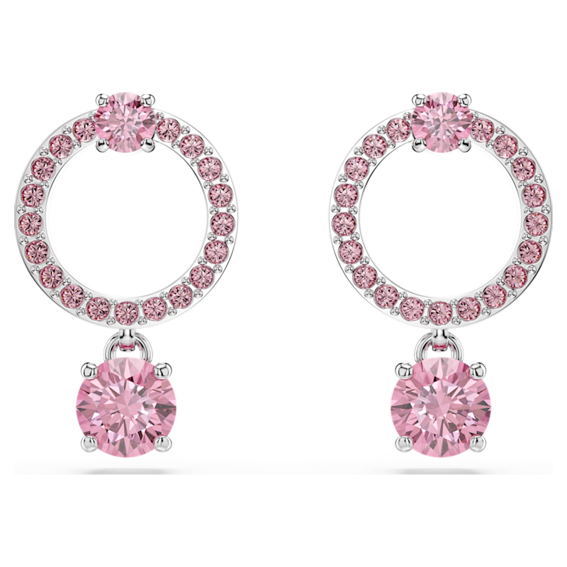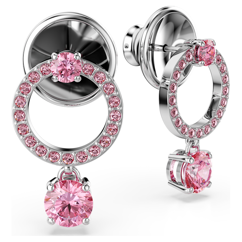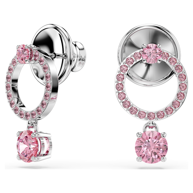 Orecchini pendenti Attract, Taglio Round, Rosa, Placcato rodio