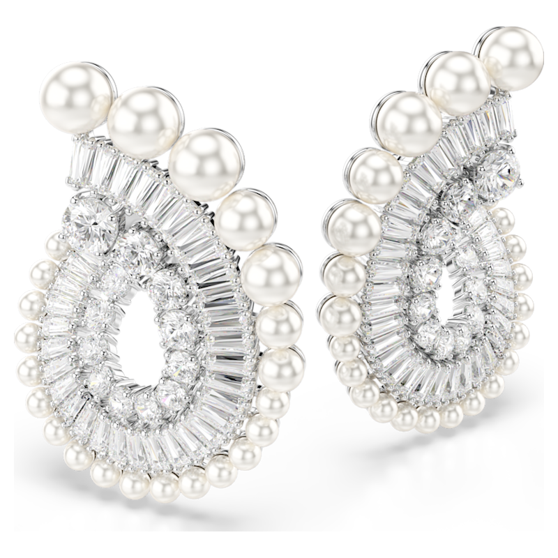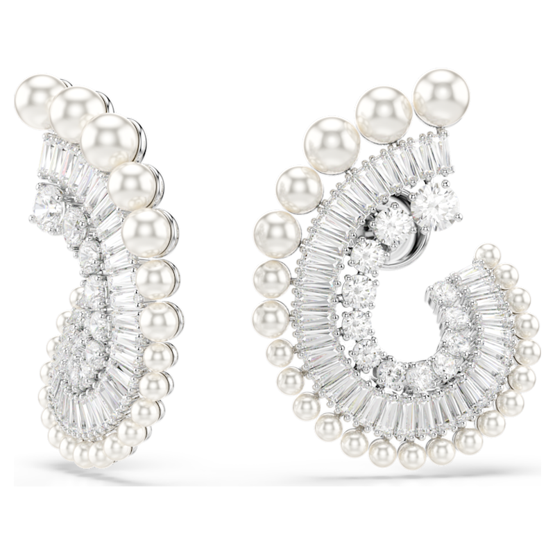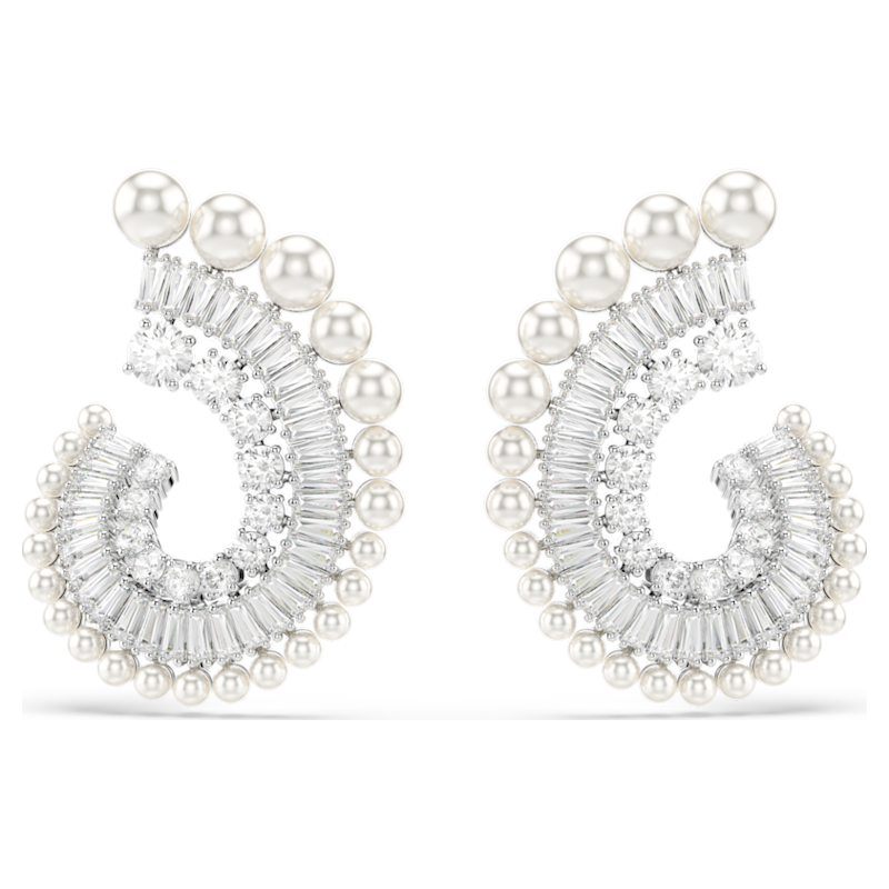 Infusi del savoir-faire di Swarovski, questi straordinari orecchini a buco sono un modo ultramoderno per elevare qualsiasi outfit. Ciascuna creazione placcata rodio presenta una spirale aperta di Swarovski Zirconia taglio Round e Baguette in una gradazione di dimensioni. Sulla sezione esterna, il design è completato da una gradazione di Crystal Pearls Swarovski, che conferiscono un tocco lussuoso e accattivante. Un paio di orecchini luminosi e splendidi, facilmente abbinabili ad altre creazioni della stessa famiglia creativa.