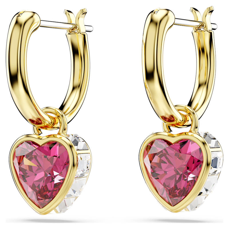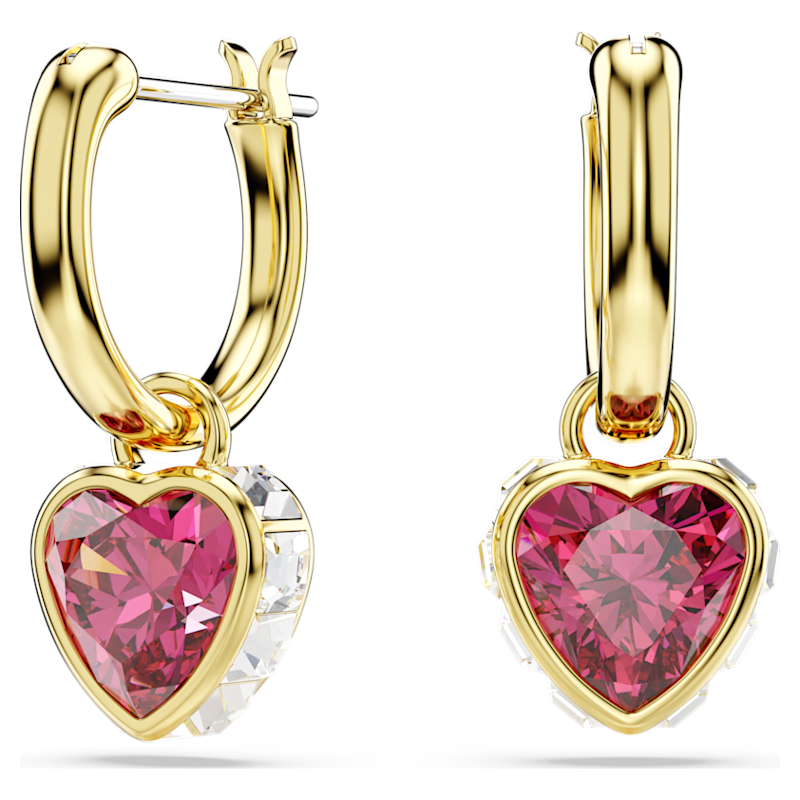 Infondi di romanticismo il tuo stile grazie a questi incantevoli orecchini a buco. Ciascun orecchino, placcato color oro, presenta un mini cerchio con un motivo rimovibile a forma di cuore, realizzato con Swarovski Zirconia rossi e impreziosito da cristalli Cry quadrati attorno ai bordi. Un versatile paio da indossare assecondando i desideri del tuo cuore.
