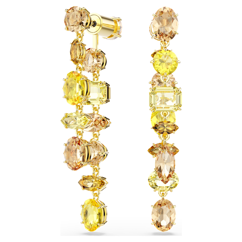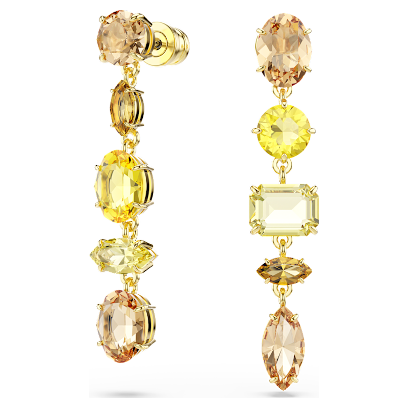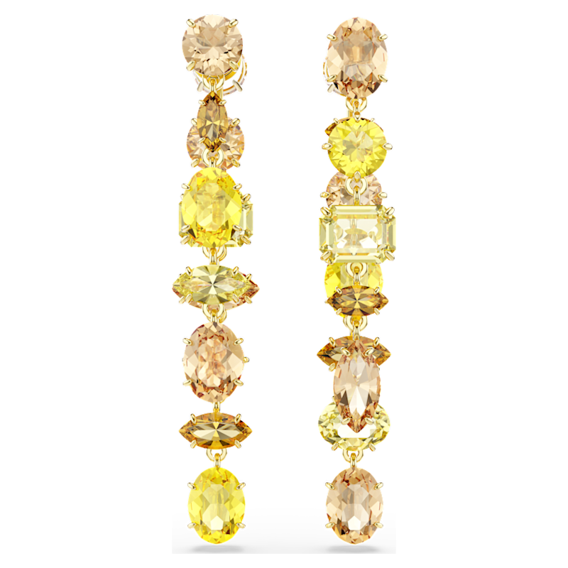 Orecchini pendenti Gema, Design asimmetrico, Taglio misto, Lunghi, Gialli, Placcato color oro