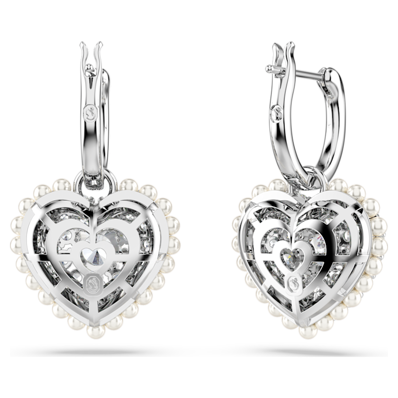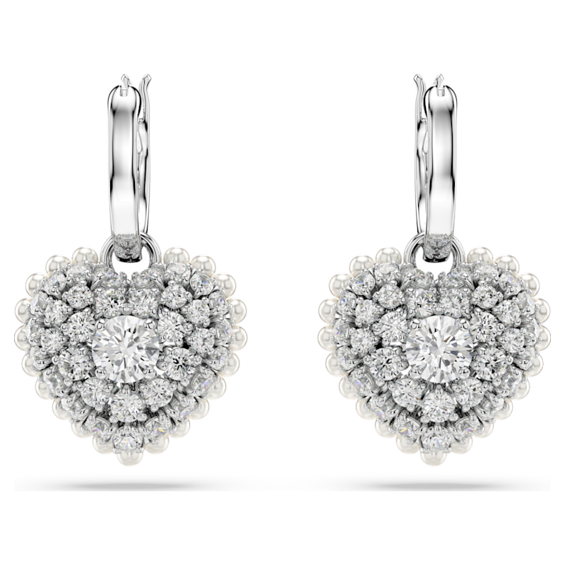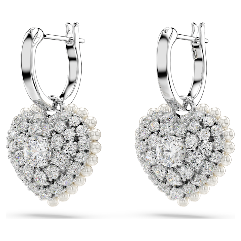 Orecchini pendenti Idyllia, Crystal Pearl, Cuore, Bianchi, Placcato rodio - Fabiani Gioiellerie