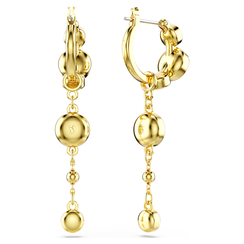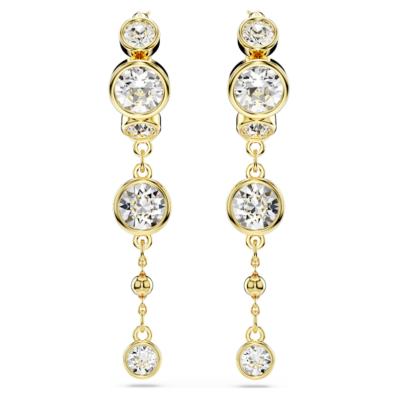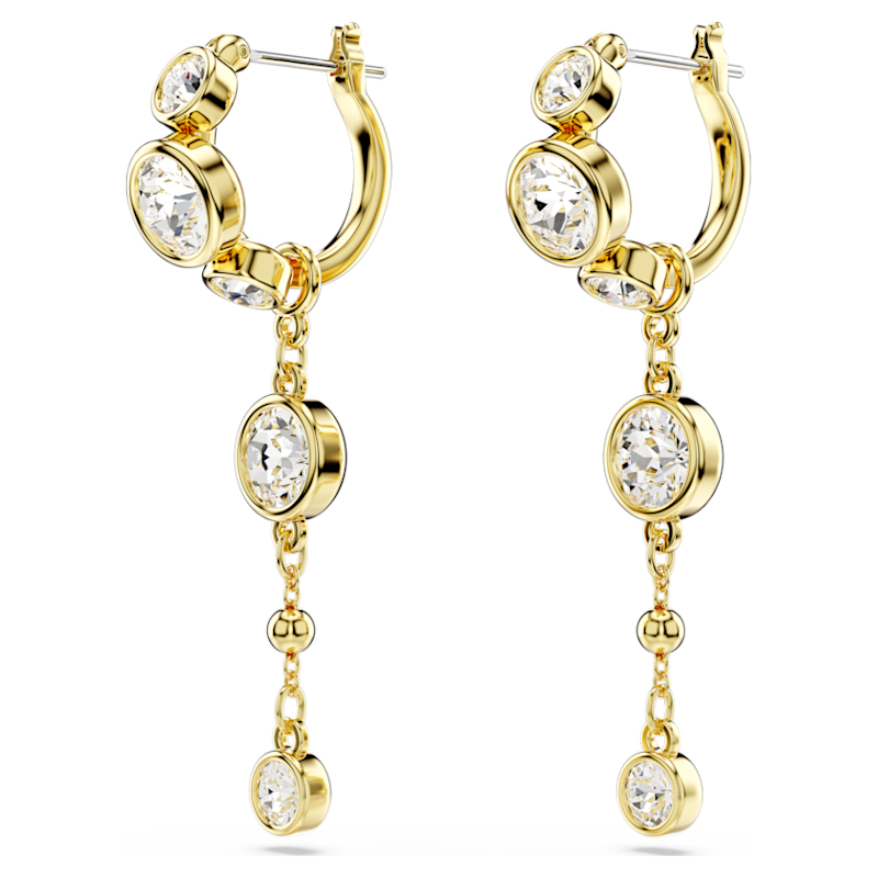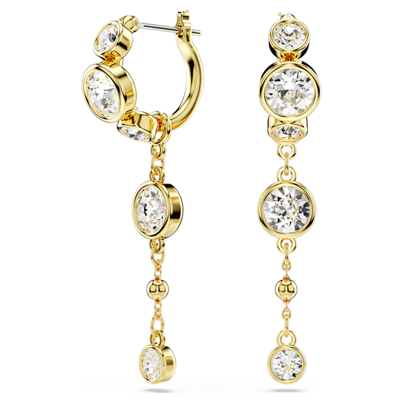 Pensati per catturare i raggi di luce ad ogni movimento, questi orecchini a buco sono un mezzo stupefacente per elevare qualsiasi outfit. Ciascun orecchino placcato color oro presenta un mini cerchio con una catenina pendente rimovibile, impreziosita da cristalli taglio Round in una tondeggiante montatura a castone e da una scintillante goccia di metallo. Una scelta versatile per chi vuole distinguersi da tutti.