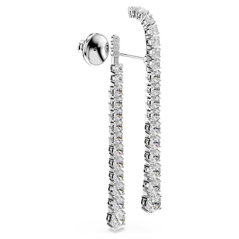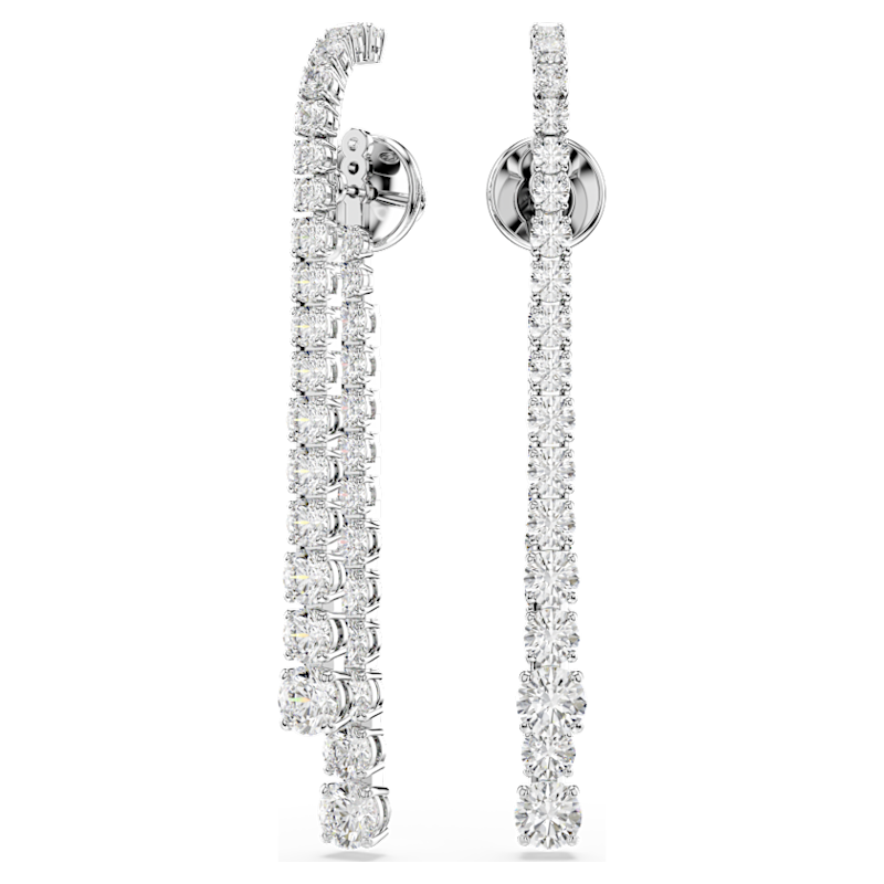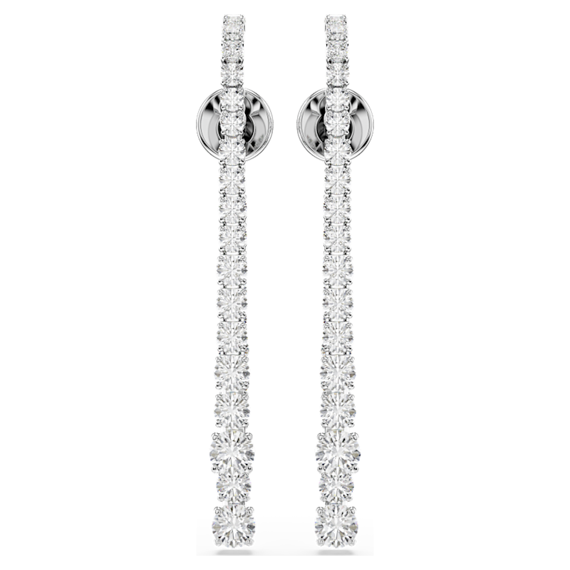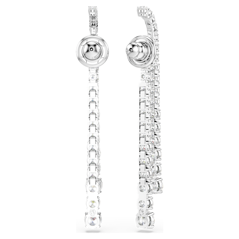 Queste straordinarie scie di luce sono la vetrina perfetta per il radioso stile Swarovski. Ciascun orecchino a buco placcato rodio presenta due fili di Swarovski Zirconia, proposte in una tonalità trasparente e in una gradazione di dimensioni crescenti. L’effetto è al contempo elegante e audace, per un paio di orecchini espressivi da indossare in ogni occasione speciale.