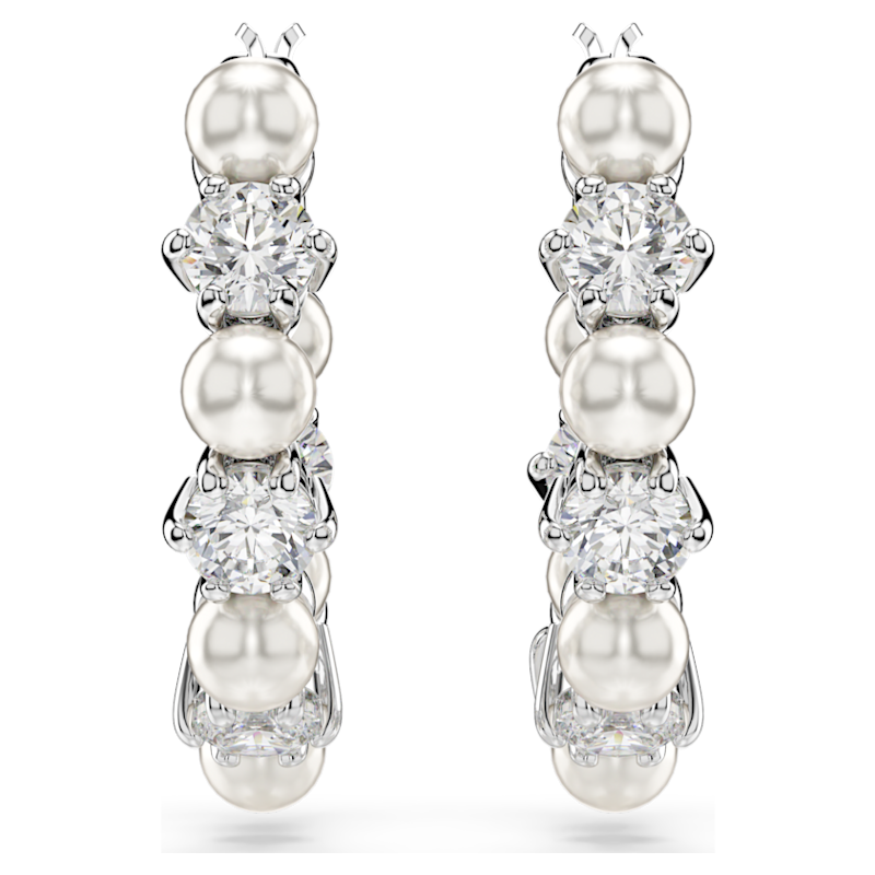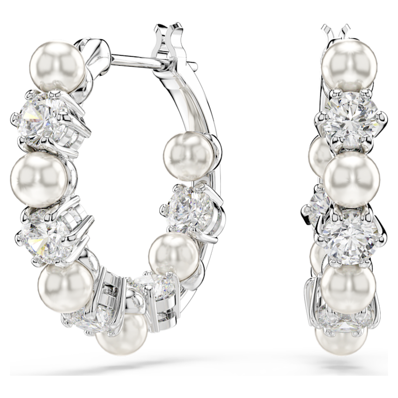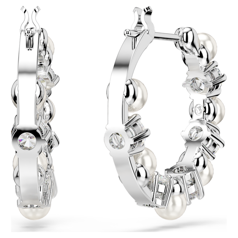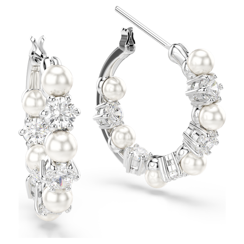 Orecchini a cerchio Matrix, Crystal Pearl, Taglio Round, Bianchi, Placcato rodio