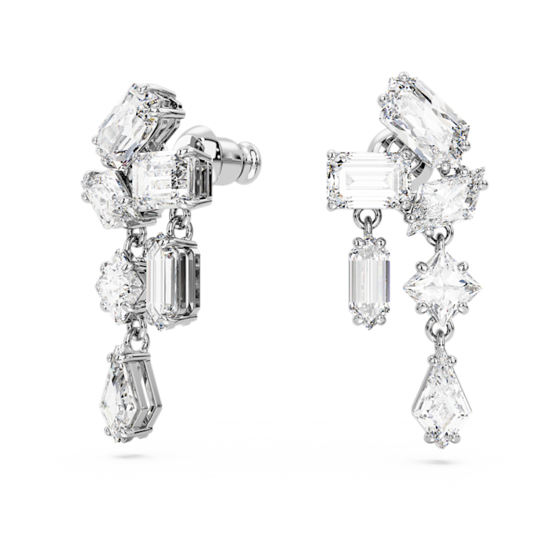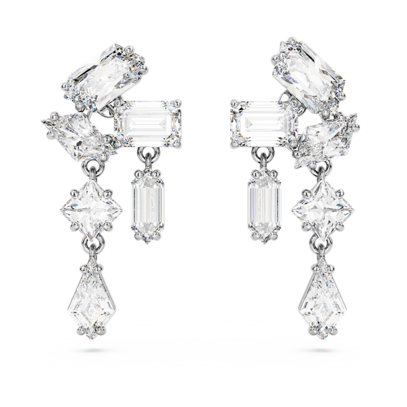 Orecchini pendenti Mesmera, Taglio misto, Bianchi, Placcato rodio - Fabiani Gioiellerie
