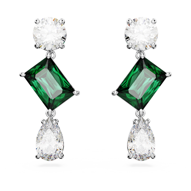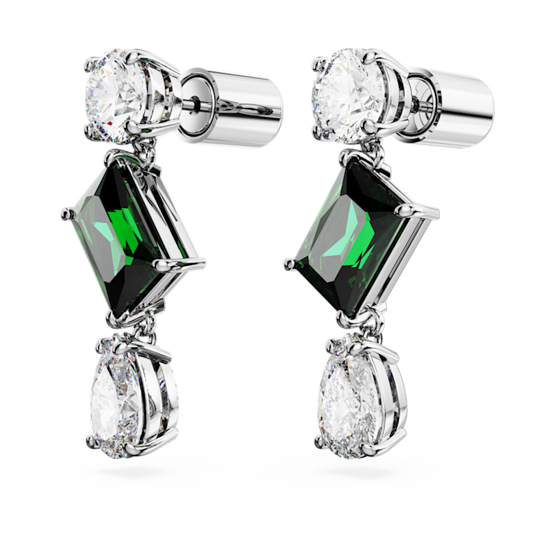 Orecchini pendenti Mesmera, Taglio misto, Verdi, Placcato rodio