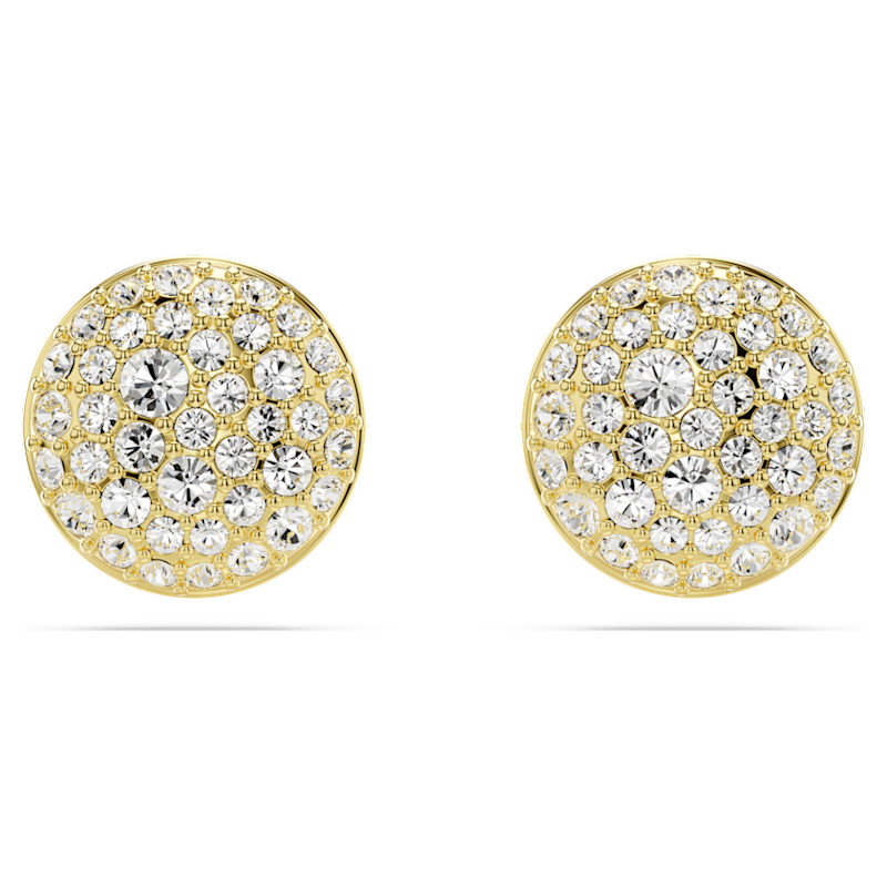 Fai risplendere il tuo stile con questi radiosi orecchini a buco. Ciascun orecchino, ispirato alle galassie, è placcato color oro e presenta un motivo a cupola, a forma di meteora, splendidamente impreziosito da un pavé a neve di cristalli Cry rotondi di diverse dimensioni. Un paio di orecchini a lobo che cattureranno tutti gli sguardi in ogni momento del giorno o della sera.