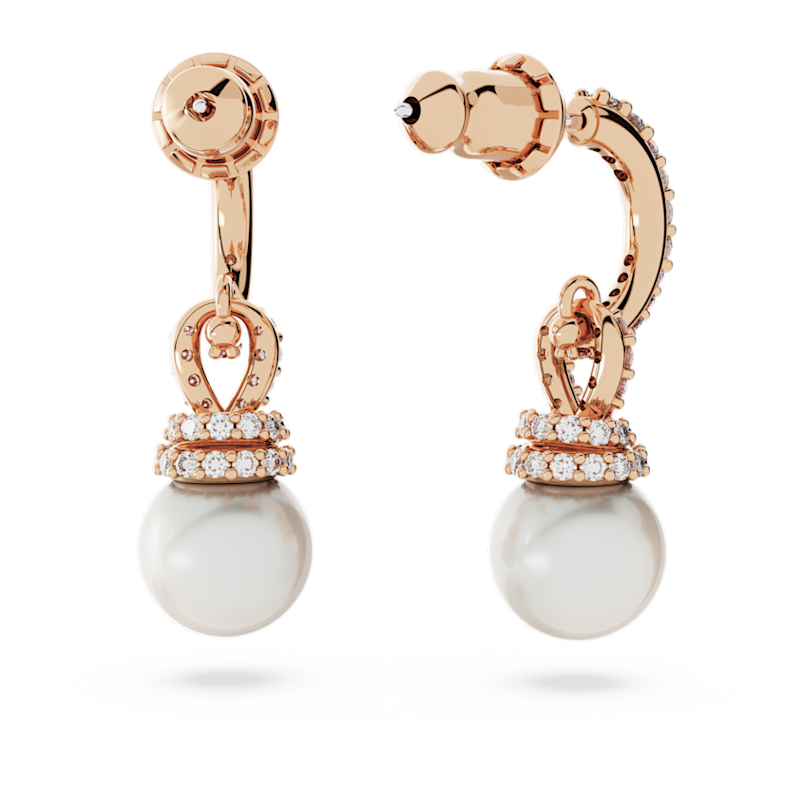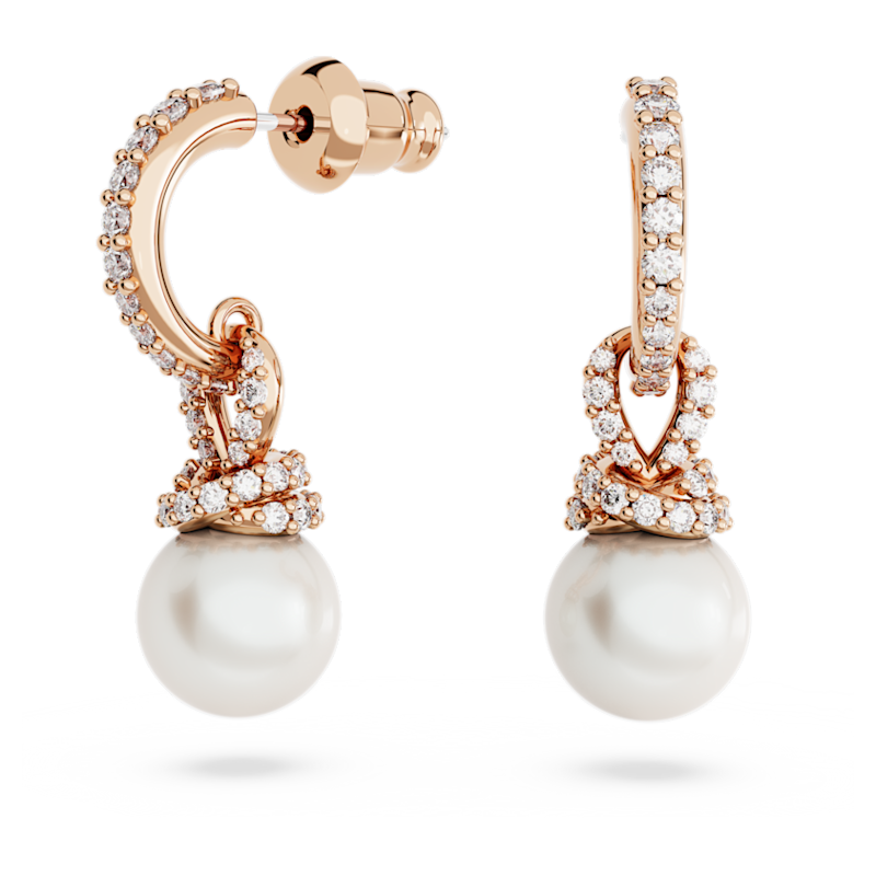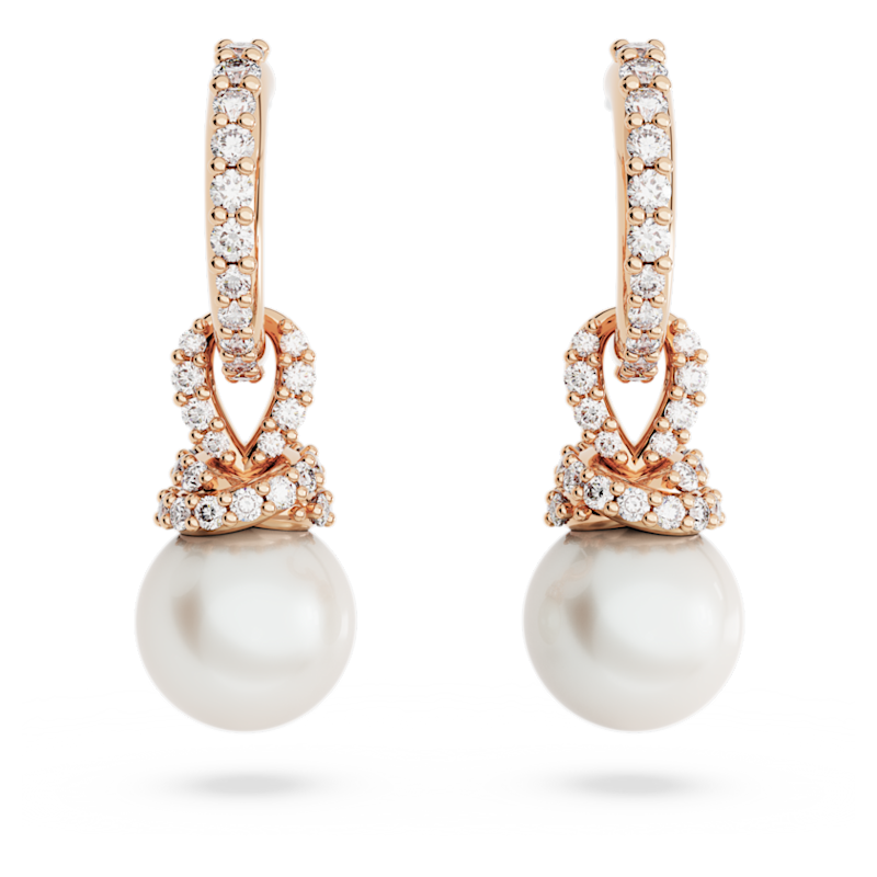 Orecchini pendenti Originally, Crystal Pearl, Bianchi, Placcato color oro rosa - Fabiani Gioiellerie