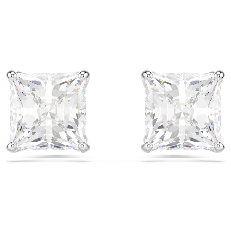 Orecchini a lobo Stilla Attract, Taglio squadrato, Bianchi, Placcato rodio