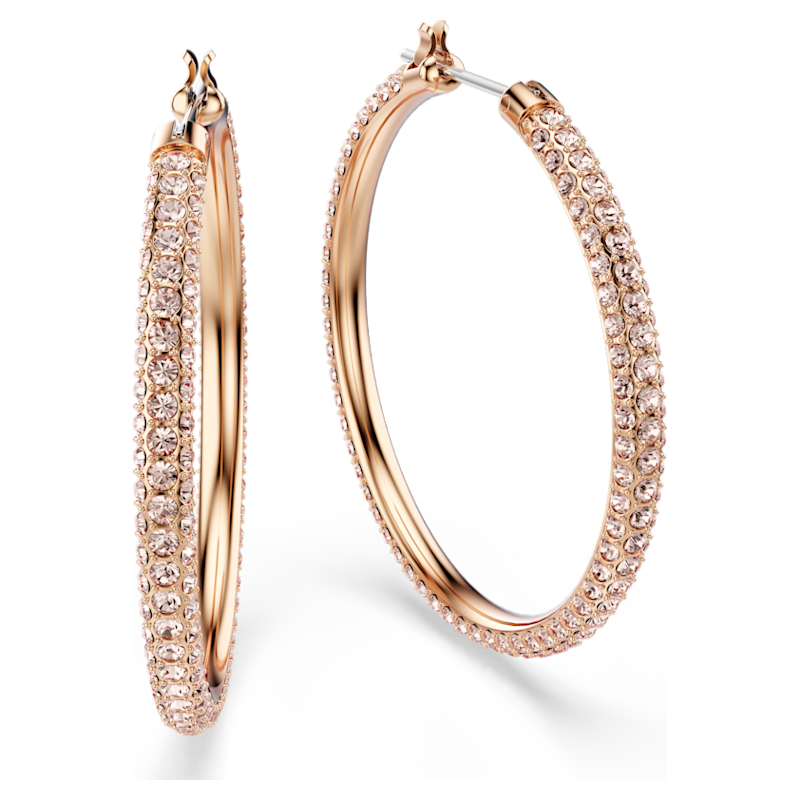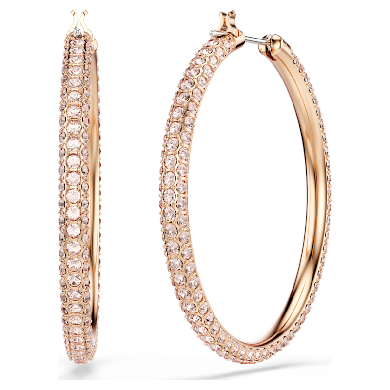 Scegli il regalo giusto per la Festa della Mamma o qualsiasi altra occasione con questo paio di cerchi d'altri tempi, decorato con pavé di cristallo, per richiamare lo speciale scintillio firmato Swarovski. Il delicato design placcato oro rosa è facilmente indossabile con ogni outfit, dal giorno alla sera.
