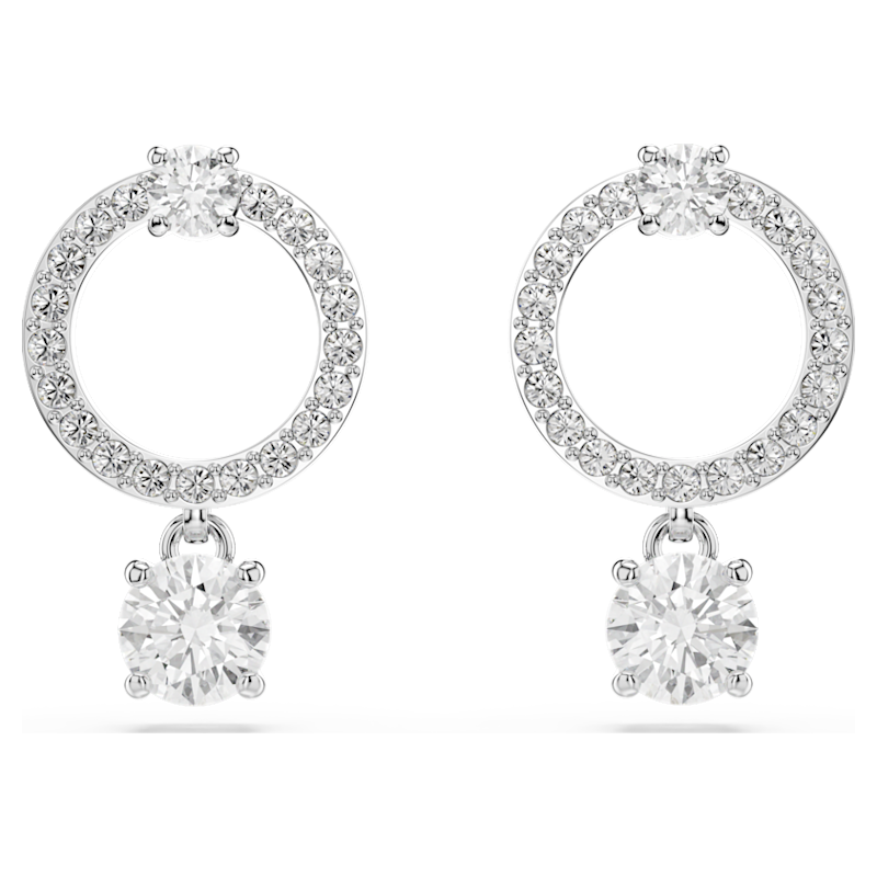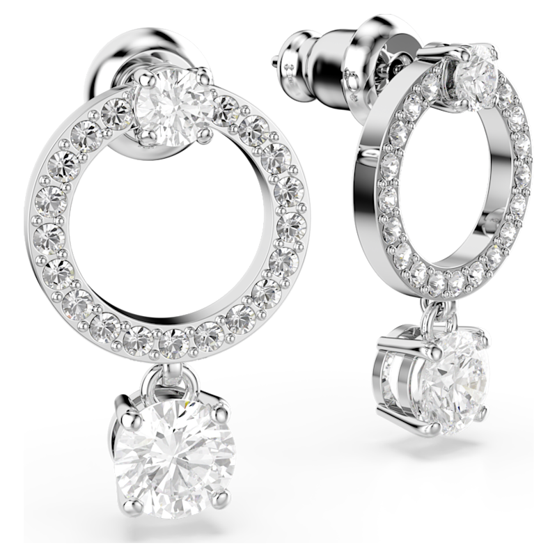 Questo paio di orecchini a buco Swarovski è semplice ma sempre brillante. Una pietra bianca rotonda ricade da un piccolo cerchio, splendidamente decorato con scintillante pavé. Gli elementi pendenti danzano ad ogni movimento del tuo capo, riflettendo la luce in modi sempre nuovi e assolutamente brillanti. Questi accattivanti orecchini aggiungono un tocco di inimitabile scintillio agli outfit da tutti i giorni.