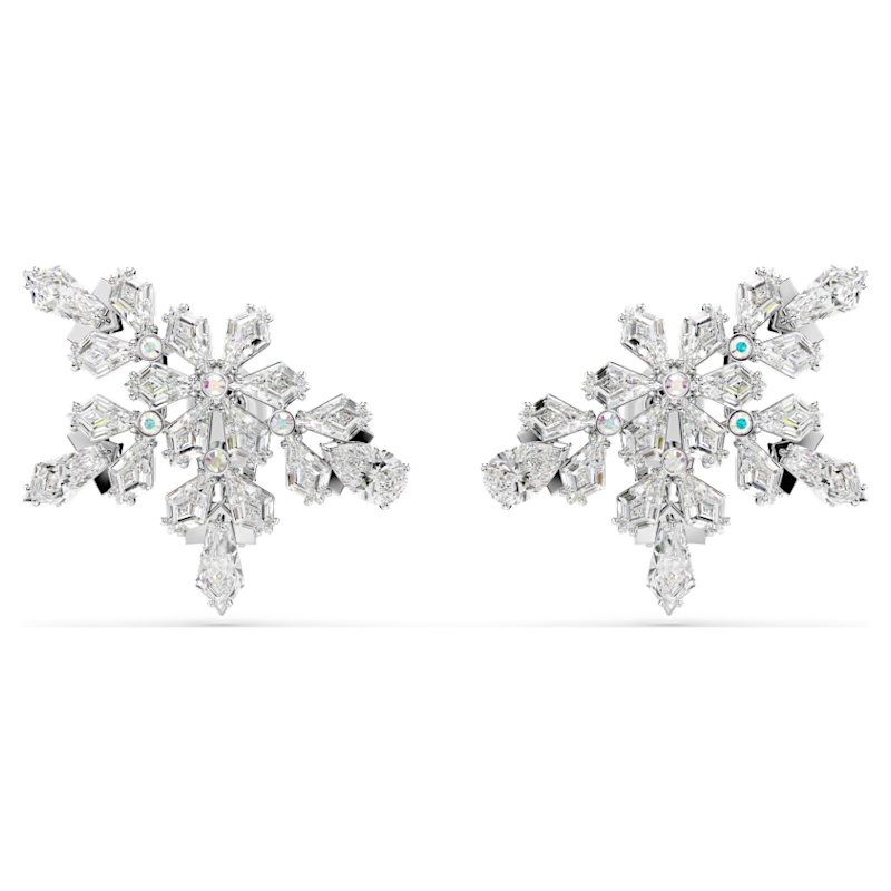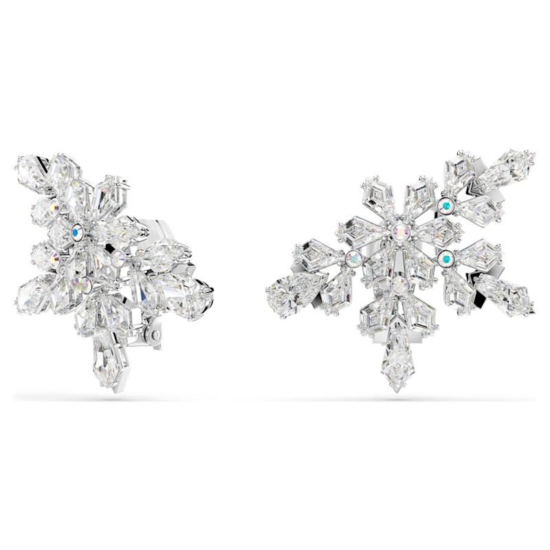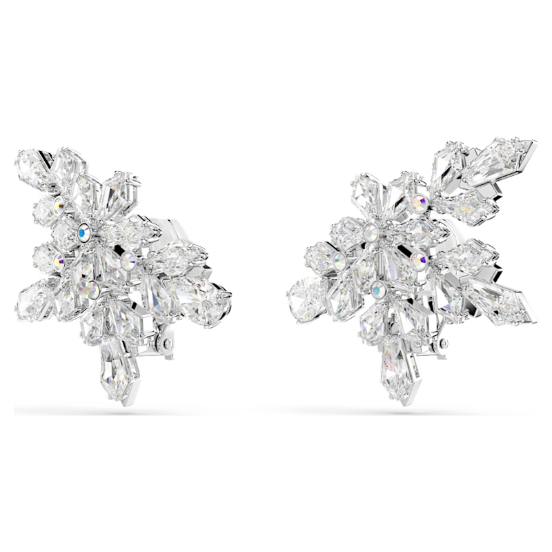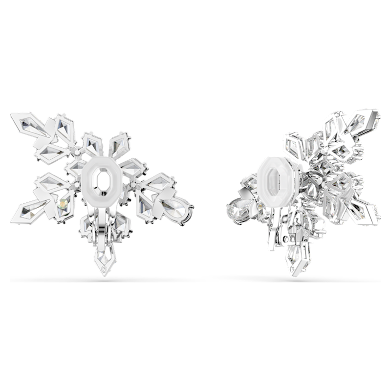 Orecchini a clip Idyllia, Taglio misto, Mezzo fiocco di neve, Bianchi, Placcato rodio - Fabiani Gioiellerie