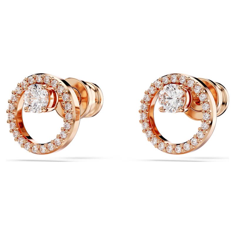 Questi raffinati orecchini a lobo circolari sprigionano un’intramontabile eleganza. Ciascun orecchino a buco è placcato color oro rosa e presenta un anello centrale in pavé di Swarovski Zirconia trasparenti, oltre a una singola Swarovski Zirconia montata a griffe al centro. Amplifica l’intensità abbinando un pendente Constella abbinato.
