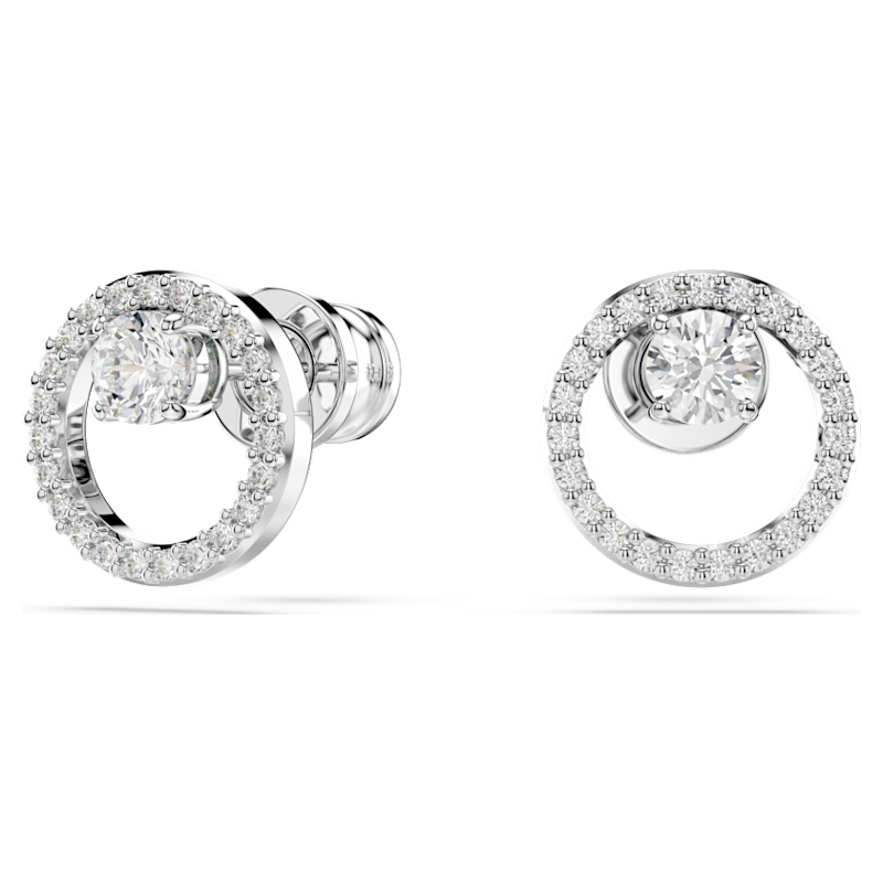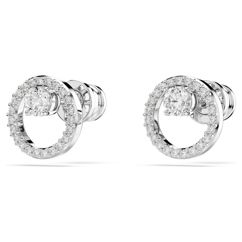 Questi raffinati orecchini a lobo circolari sprigionano un’intramontabile eleganza. Ciascun orecchino a buco è placcato rodio e presenta un anello centrale in pavé di Swarovski Zirconia trasparenti, oltre a una singola Swarovski Zirconia montata a griffe al centro. Amplifica l’intensità abbinando un pendente Constella abbinato.