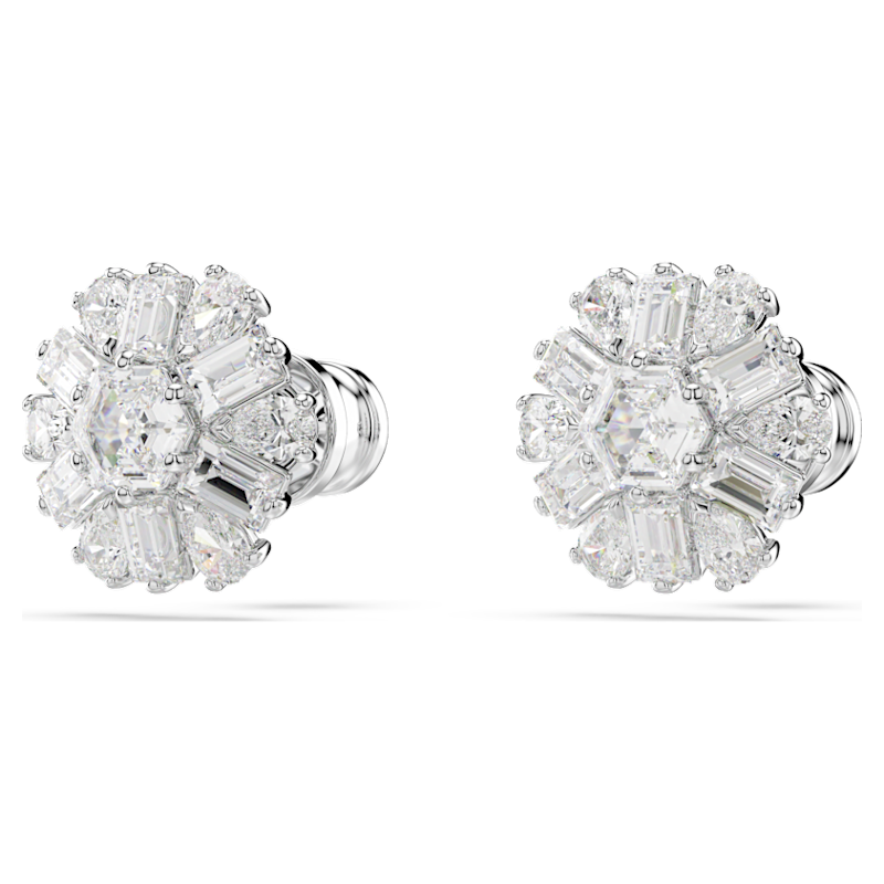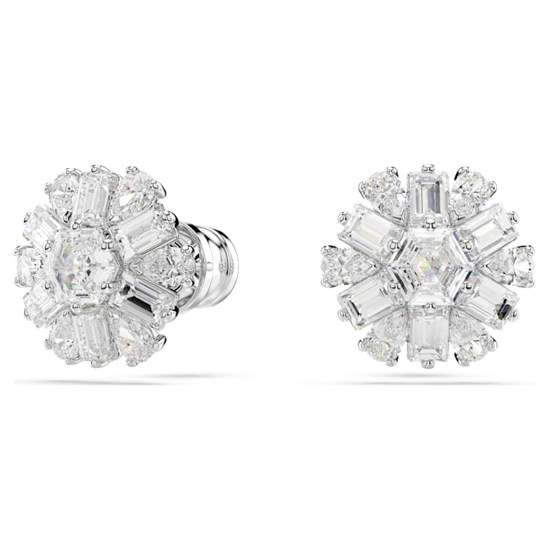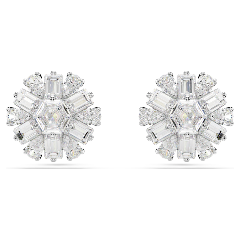 Orecchini a lobo Idyllia, Taglio misto, Fiocco Di Neve, Bianchi, Placcato rodio