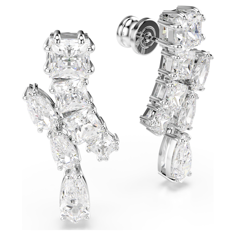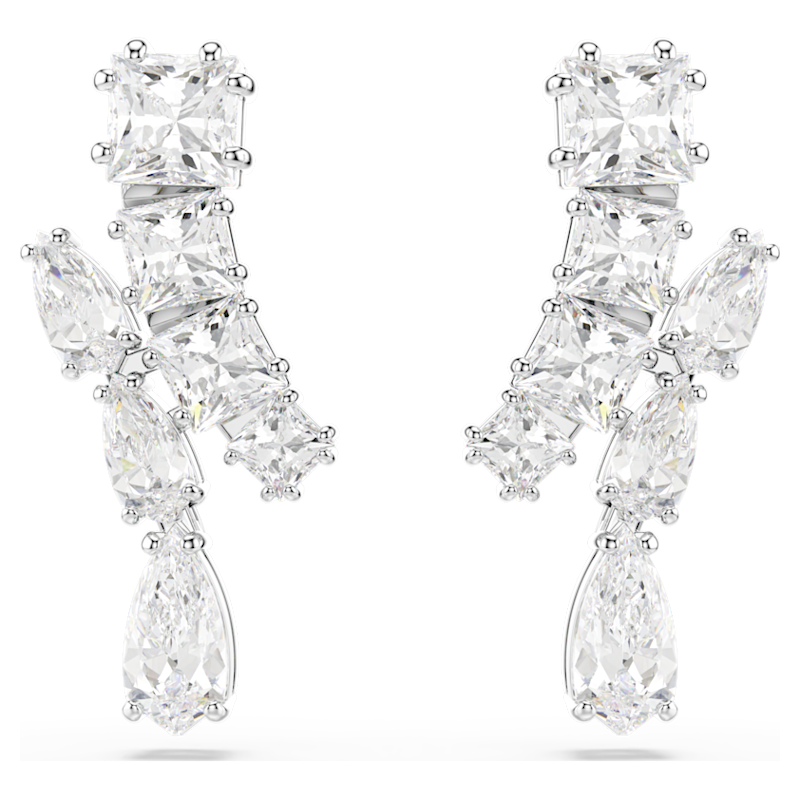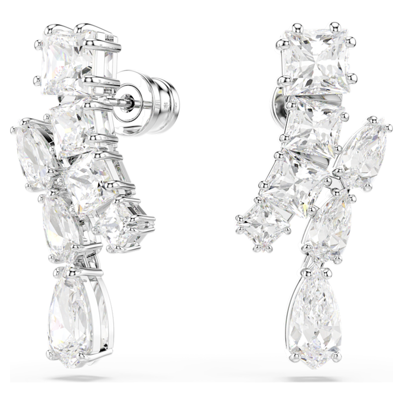 Questi straordinari orecchini a buco scintillano di una dinamica radiosità. Ciascun orecchino è placcato rodio e impreziosito da una moltitudine di Swarovski Zirconia di tagli differenti montate a griffe. Un elemento sospeso di grande effetto fa sì che la luce si rifletta da ogni angolazione. Abbina questo paio ad un pendente Matrix coordinato per uno styling elegante da tutti i giorni.