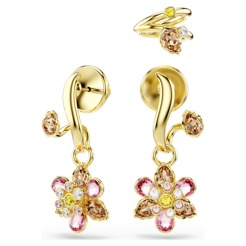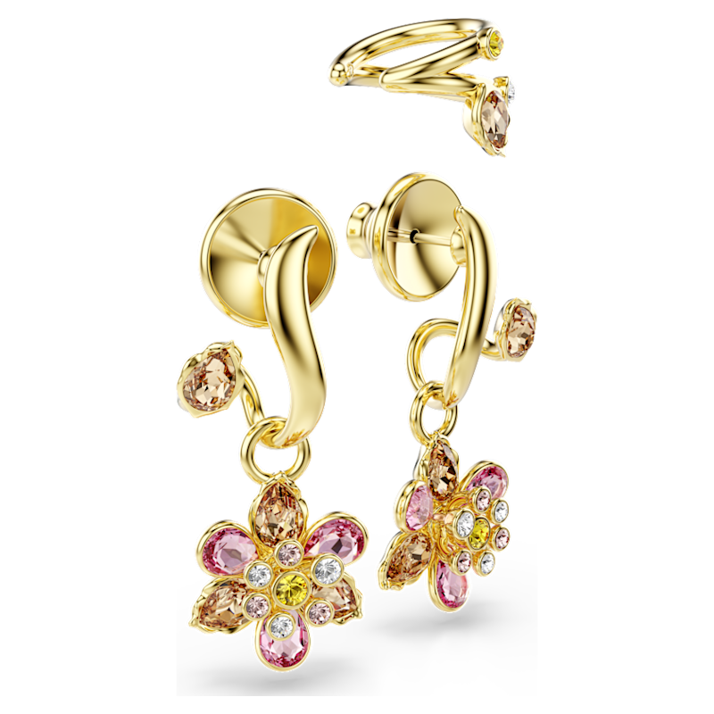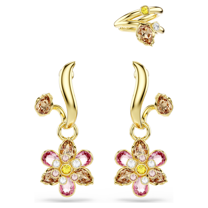 Orecchini Idyllia, Set (3), Taglio misto, Fiore, Multicolore, Placcato color oro