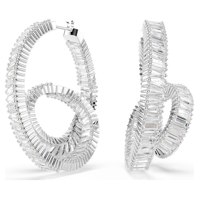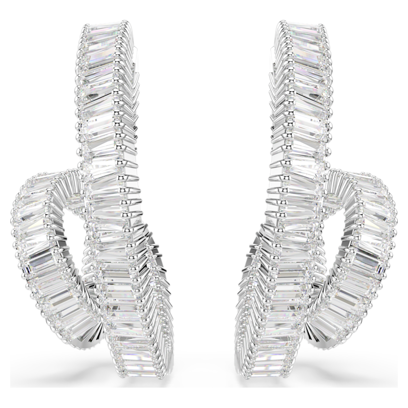 Con il loro esclusivo design a spirale, questi orecchini a buco Matrix diffondono la luce in ogni direzione. Ciascun elemento placcato rodio si ispira alla forma di un nastro e presenta un vortice di Swarovski Zirconia taglio Baguette con montatura a griffe. Un audace paio di orecchini a cerchio per uno stile stravagante e la scelta perfetta da abbinare a un pendente Matrix coordinato.