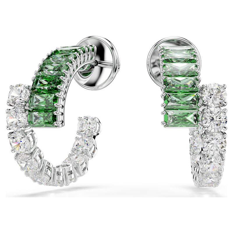 Orecchini a cerchio Matrix, Taglio misto, Verdi, Placcato rodio