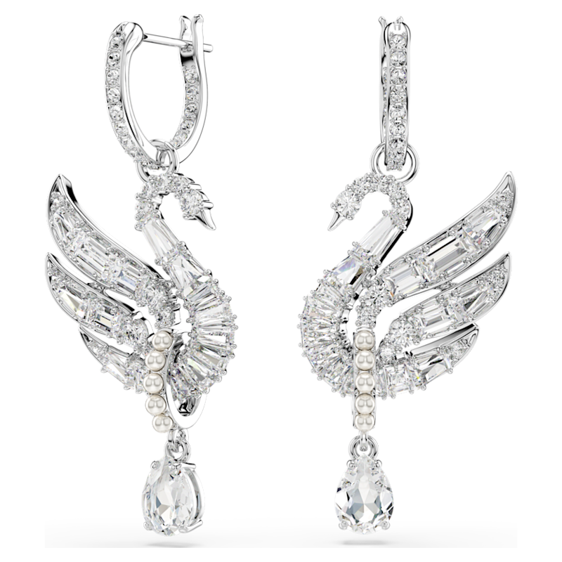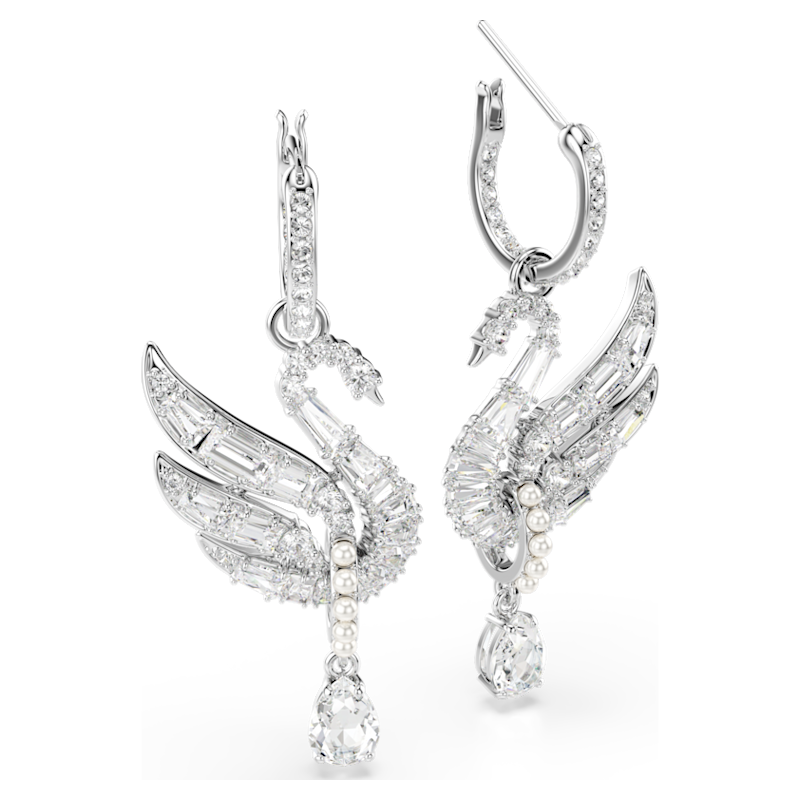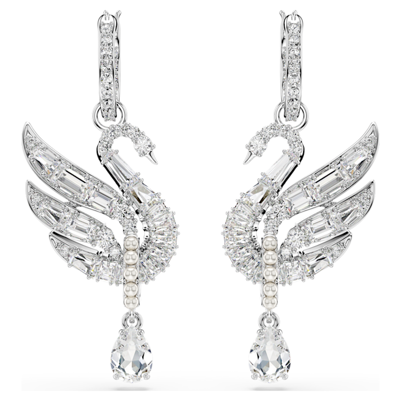 Gioiosi, eleganti e radiosi, questi orecchini sono una celebrazione dell’iconico cigno Swarovski. Collegato ad un mini cerchio con pavé, ogni elemento placcato rodio è impreziosito da Swarovski Zirconia trasparenti e presenta un singolo taglio Pear che pende da un cerchio con pavé di Crystal Pearls Swarovski. Indossali insieme al pendente coordinato per un look di pura raffinatezza.