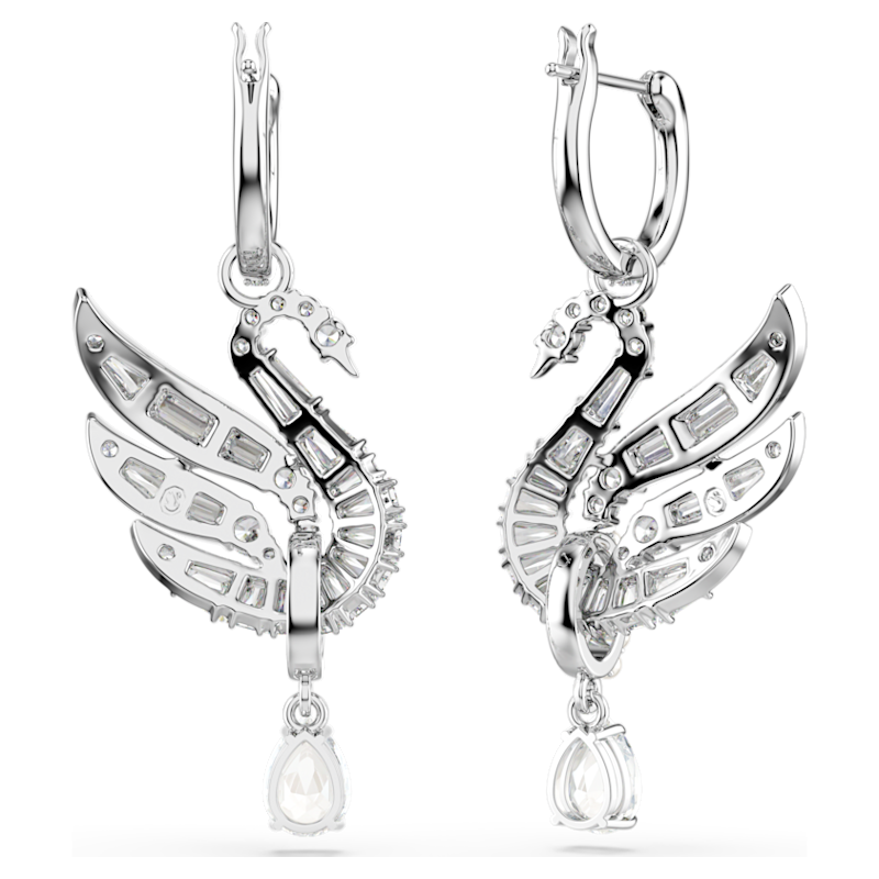 Orecchini Swan, Cigno, Bianchi, Placcato rodio