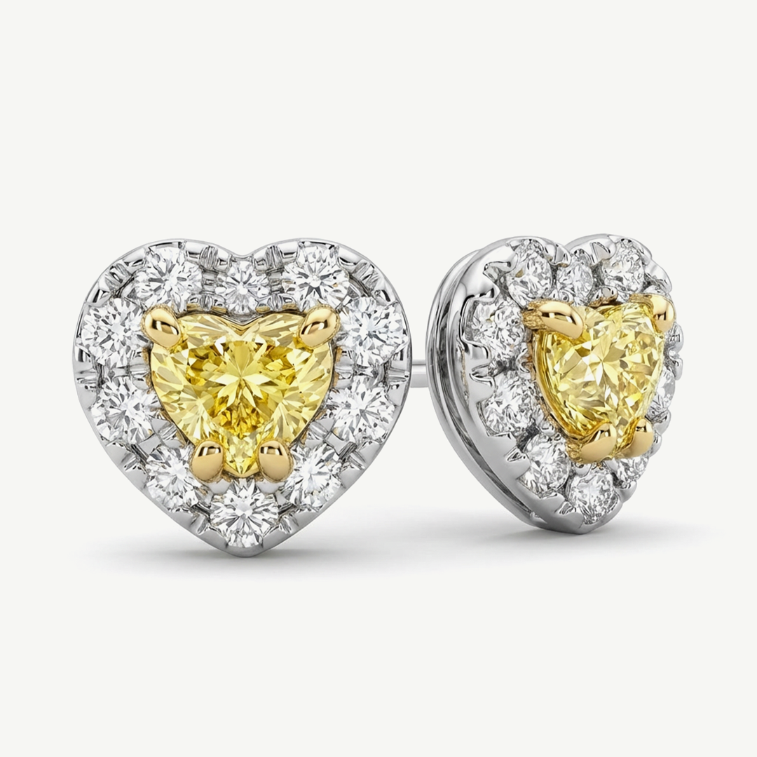 Il design unisce romanticismo e prestigio: la forma a cuore simboleggia amore ed emozione, mentre la scelta del diamante fancy rende questi orecchini esclusivi e di grande impatto visivo, ideali per chi desidera un gioiello importante ma armonioso.