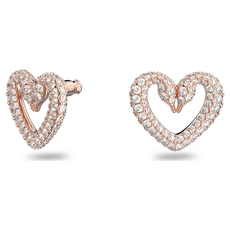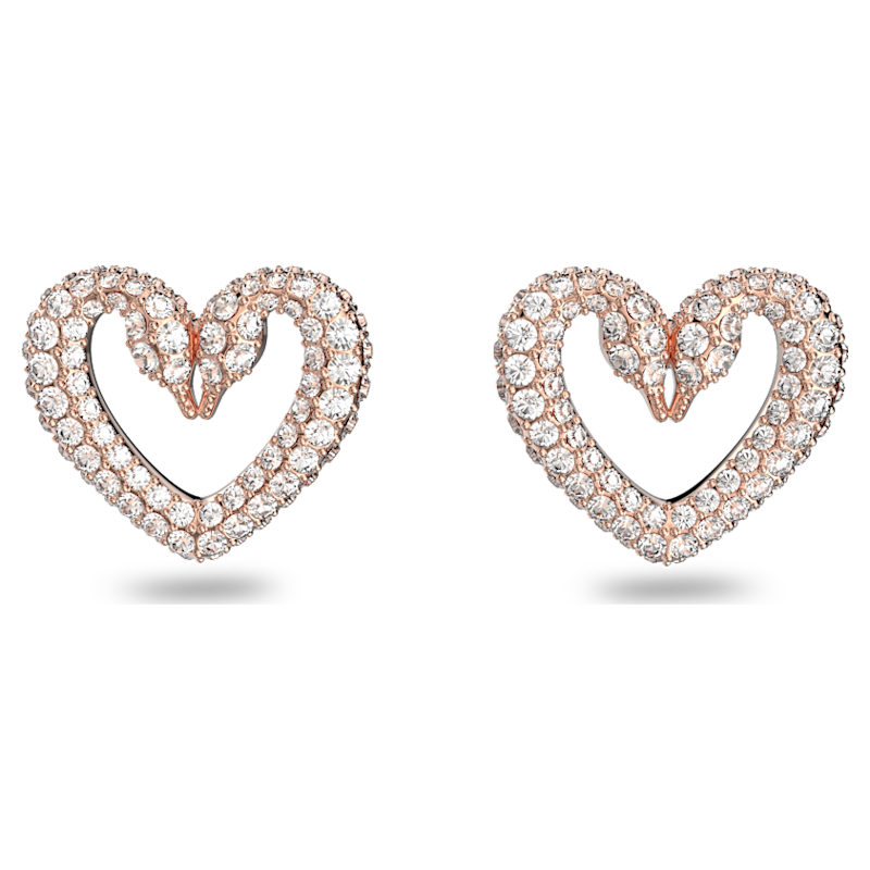 Questi orecchini a buco, ideali da indossare ogni giorno, rappresentano la nuova direzione intrapresa dall’iconico emblema del cigno Swarovski. Questo paio a forma di cuore, placcato in tonalità oro rosa è pensato per scatenare l’immaginazione con gli sfavillanti cristalli pavé. Il regalo ideale per una persona amata, o magari per te. Parte della famiglia Sublima, questi orecchini sono ideati per la Collection III.