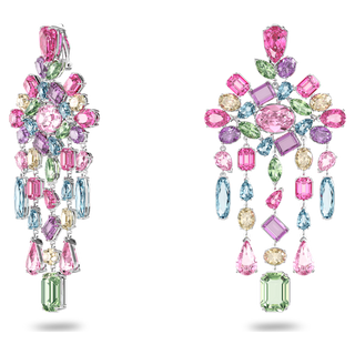 Orecchini a clip Gema, Taglio misto, Chandelier, Extra lunghi, Multicolore, Placcato rodio