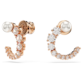 Orecchini a cerchio Matrix, Crystal Pearl, Taglio Round, Bianchi, Placcato color oro rosa