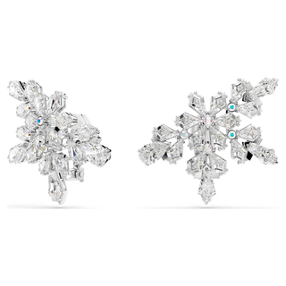 Orecchini a clip Idyllia, Taglio misto, Mezzo fiocco di neve, Bianchi, Placcato rodio
