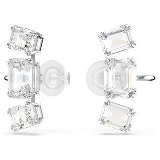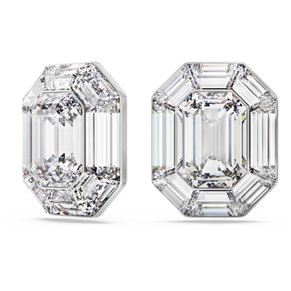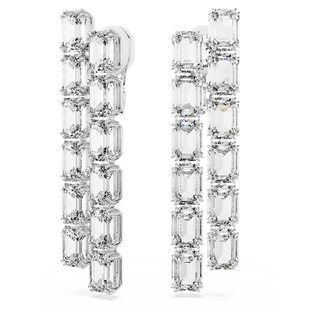 Orecchini a clip Millenia, Taglio ottagonale, Lunghi, Bianchi, Placcato rodio