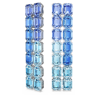 Orecchini a clip Millenia, Taglio Octagon, Sfumatura di colore, Lunghi, Blu, Placcato rodio