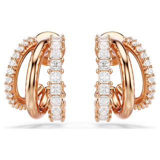 Orecchini a cerchio Hyperbola, Taglio misto, Mini, Bianchi, Placcato color oro rosa