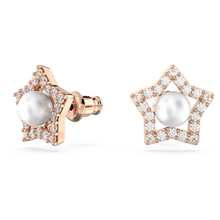 Orecchini a lobo Stella, Taglio Round, Stella, Bianchi, Placcato color oro rosa